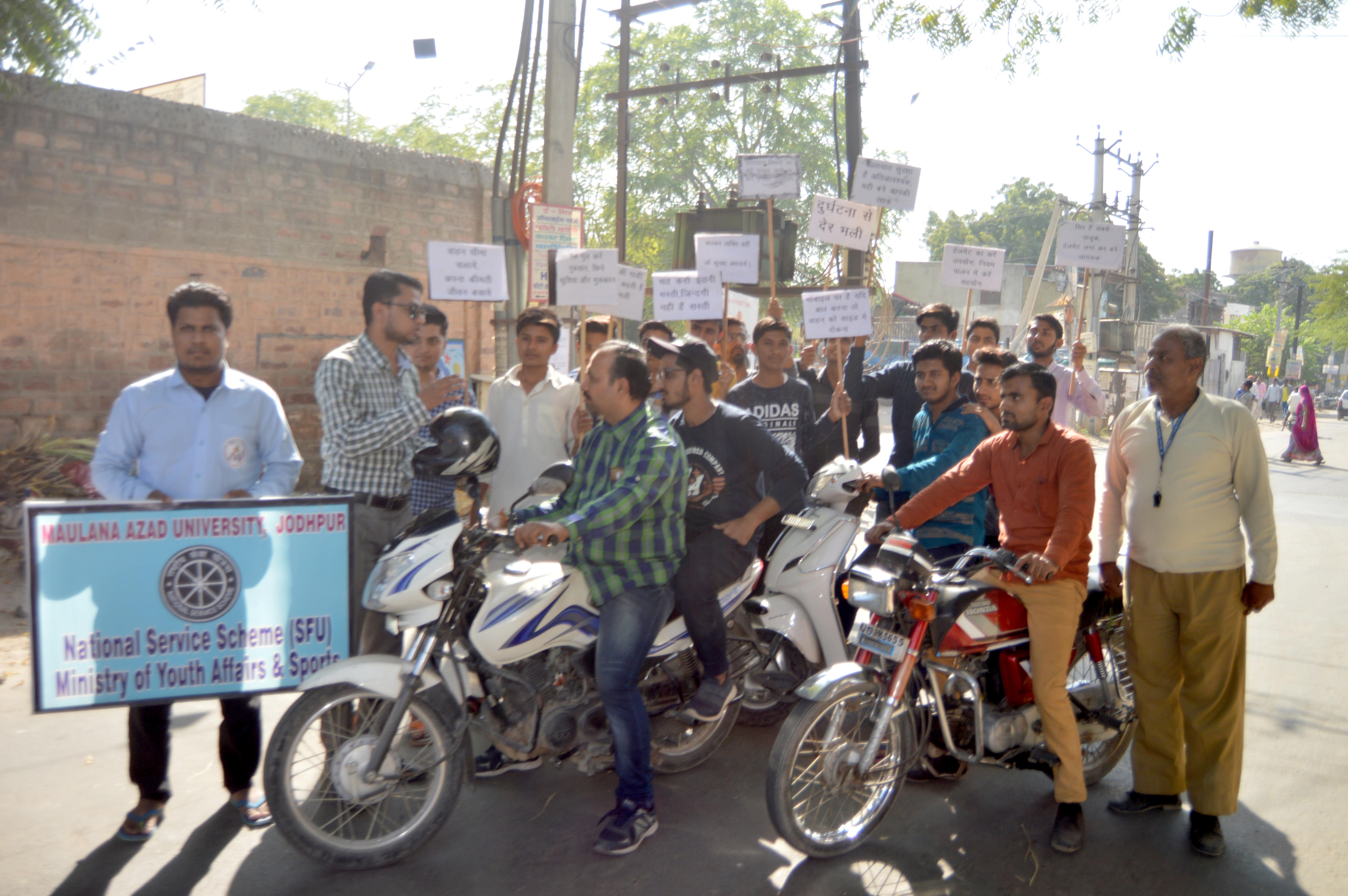 रैली से दिया सड़क सुरक्षा का संदेश सड़क दुर्घटना में मारे गये मृतकों की स्मृति में मौलाना आज़ाद यूनिवर्सिटी की ओर से मनाया गया ‘वल्र्ड रिमेमबरेंस डे‘ जोधपुर 18 नवम्बर। मौलाना आज़ाद विश्वविद्यालय जोधपुर की ओर से राज्य सड़क सुरक्षा दिवस के उपलक्ष म...