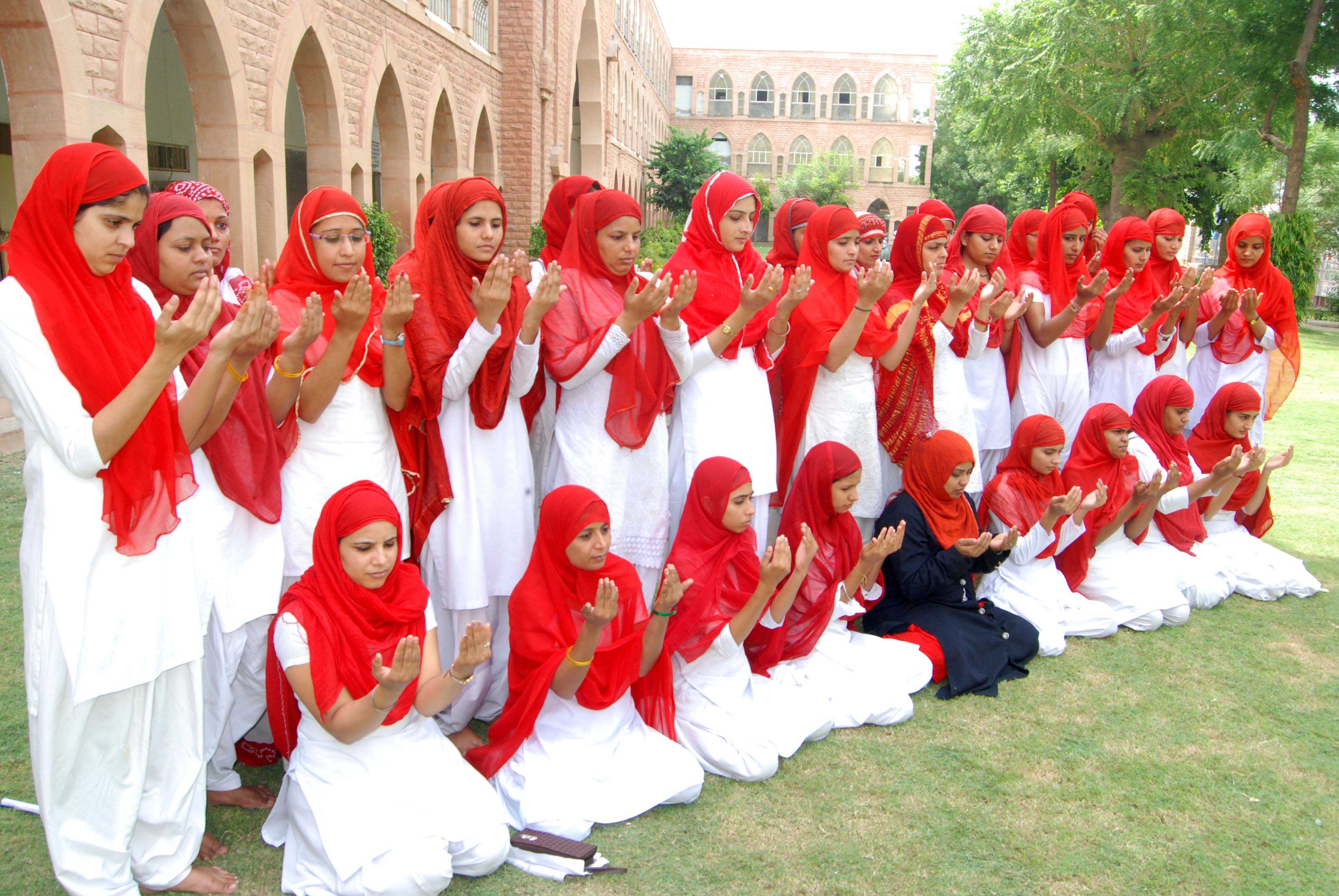 ये नेक दुआएं, कमला नेहरू नगर स्थित मौलाना आजाद मुस्लिम महिला बीएड कॉलेज की छात्राध्यापिकाओं ने पवित्र माह रमज़ान के तीसरे शुक्रवार के मौके़ पर की। बीएड प्राचार्या डॉ. सपना सिंह राठौड़, कार्यक्रम प्रभारी रीना गोयल, छात्राध्यापिका हिना बानो, किरण मोबारसा, रूखसाना, लक्ष्मी भाटी, मंजू भाटी, अस्मा खान, नेहा खिंची, शाहिना परवीन, धीरज कुंवर, नसरीन बानो, स्वालेहा परवीन, पिंकी, निकहत मिर्जा, ज्योति शेखावत, शबनम जहां, हुमेरा, किरण सहित सभी समुदायों की छात्राध्यापिकाओं ने देश की खुशहाली के लिए संयुुक्त रूप से विशेष दुआएं की।