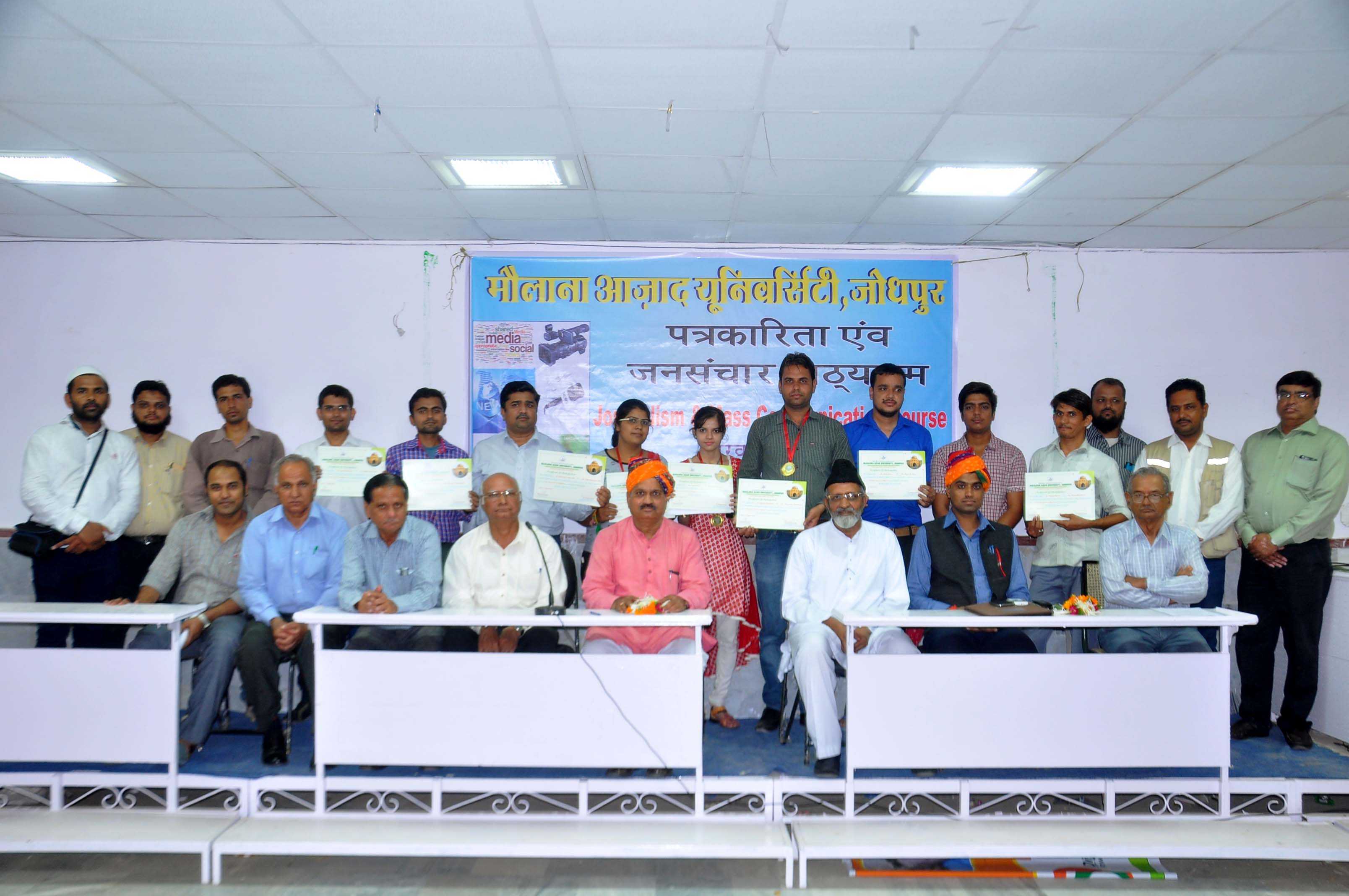 मौलाना आजाद यूनिवर्सिटी के प्रेसिडेन्ट डॉ हामिद अली खान ने उत्तीर्ण विध्यार्थियों को शुभकामनाएं देते हुए छात्र-छात्राओं को कला, वाणिज्य, विज्ञान, बीसीए, पत्रकारिता, राजस्थानी भाषा, योगा व पब्लिक हेल्थ जेसै कोर्सेज से जुड़ने का आह्वान किया। पत्रकारिता एवं जनसंचार पाठ्यक्रम के प्रभारी डॉ. प्रकाश पुरोहित ने कोर्स के बारे में बताते हुए बारहवीं उत्तीर्ण स्टूडेंन्ट के लिए छः माह के सर्टिफिकेट कोर्स एवं स्नातक उत्तीर्ण के लिए एक वर्ष के डिग्री कोर्स की जानकारी दी।