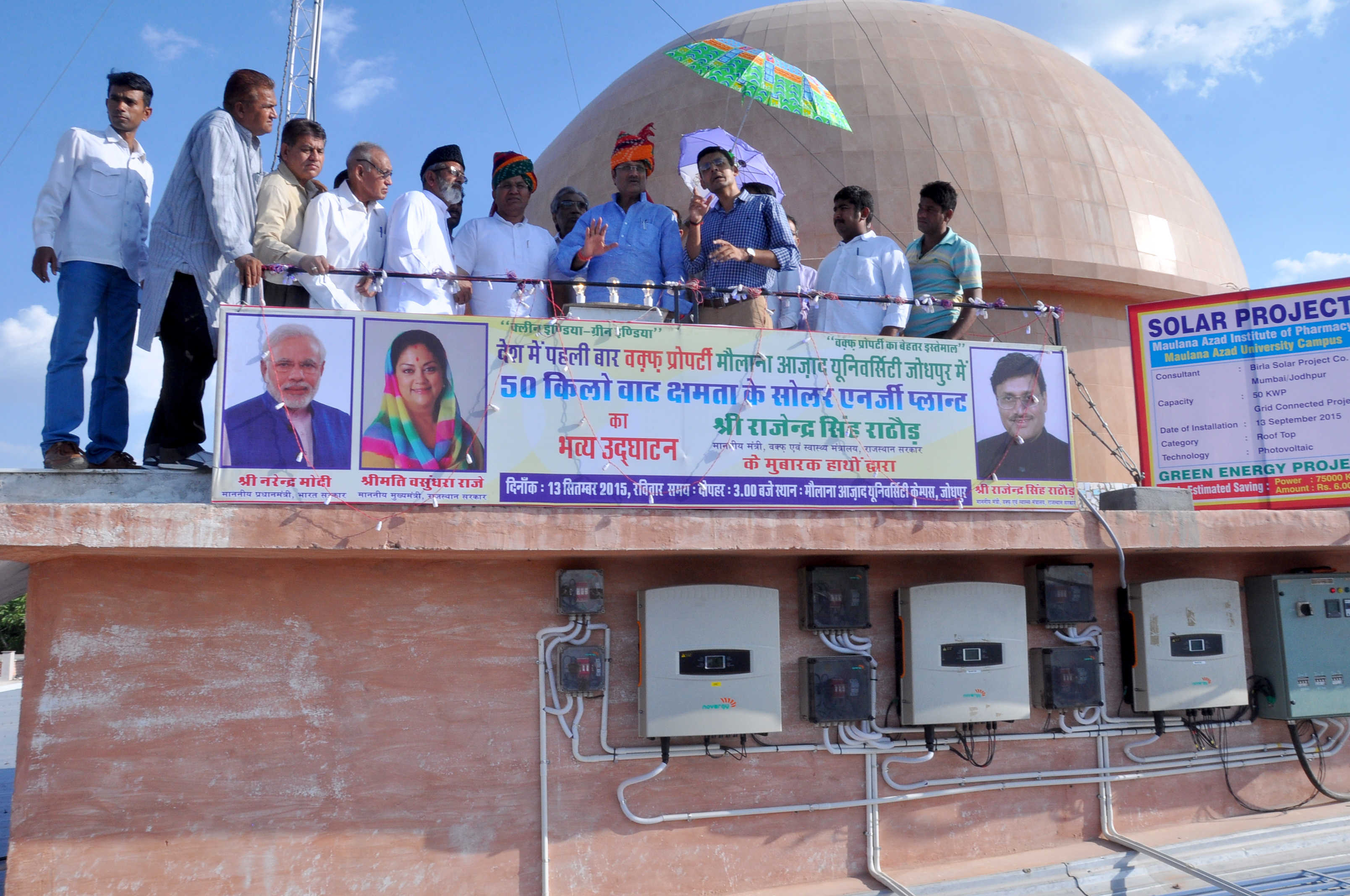 ये कहना है, वक़्फ़ एवं चिकित्सा-स्वास्थ्य मंत्री, राजेन्द्र सिंह राठौड़ का, जो मारवाड़ मुस्लिम एज्यूकेशनल एण्ड वेलफेयर सोसायटी के अधिन संचालित ‘वक़्फ़ सम्पत्ति, मौलाना आज़ाद यूनिवर्सिटी जोधपुर‘, में लगाये गये '50 किलो वाट क्षमता के सोलर प्लान्ट' उद्घाटन समारोह में बतौर मुख्य अतिथि बोल रहे थे।
