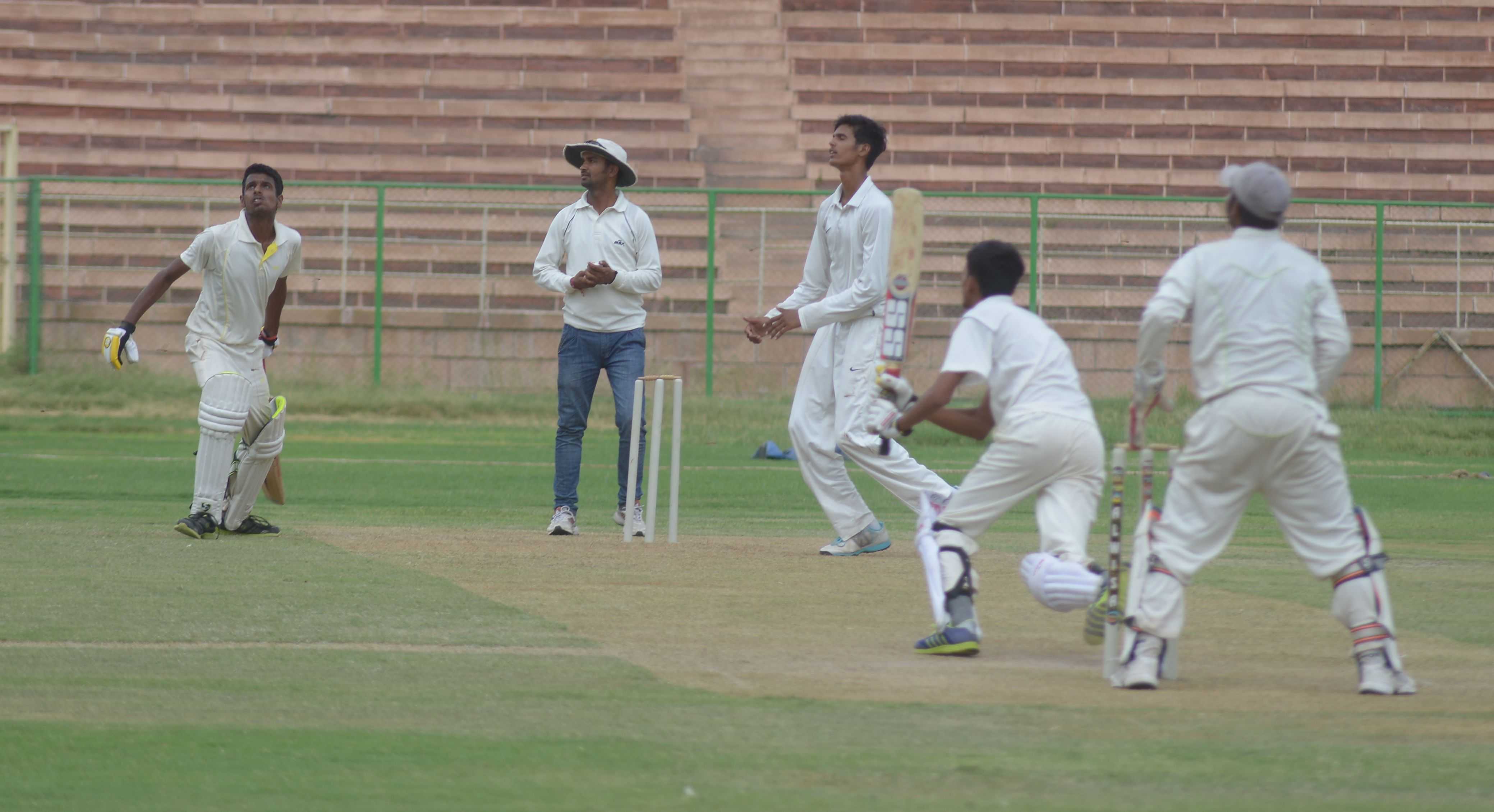 संयोजक डॉ. सोहन किशन जोशी ने बताया कि मैदान नम्बर तीन न्यू रेल्वे मैदान में उदयपुर व भरतपुर के बीच खेले गये मैच में उदयपुर ने विकास के 51 व दीक्षान्त के 39 रनो की बदौलत 179 रनों का लक्ष्य खडा किया। जवाब में भरतपुर की टीम 105 रनों पर सिमट गई और उदयपुर ने 74 रन से जीत दर्ज की। भरतपुर के विकास ने सर्वाधिक 63 रन बनाये तथा उदयपुर के मनीश ने 2 विकेट लिये। वहीं, उदयपुर ने अपने प्री क्वार्टर फाइनल मैच में बांसवाड़ा को 23 रनों से मात दी।