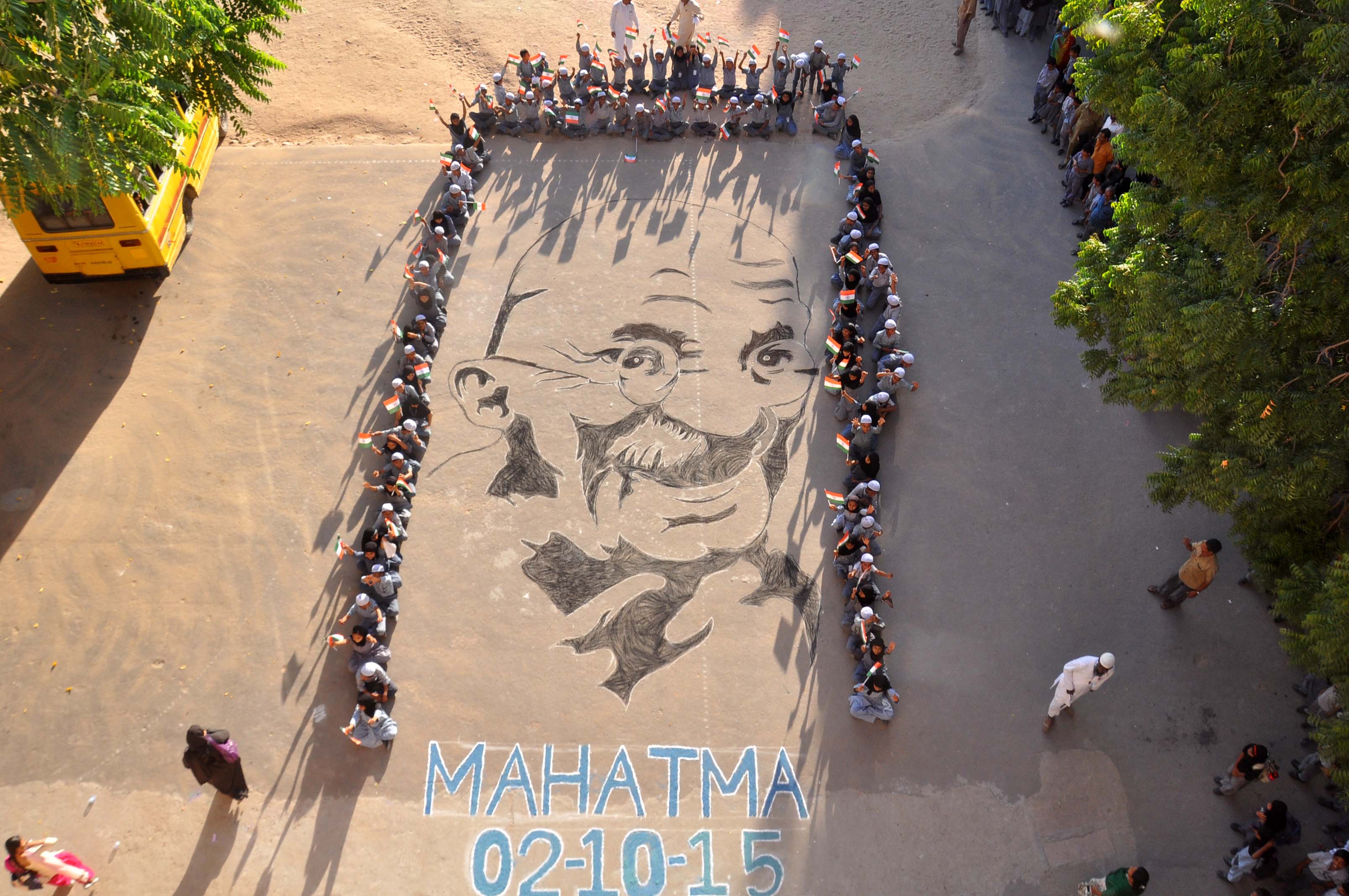 महात्मा को मानव श्रृखंला से उकेर, दी सच्ची श्रदांजलि