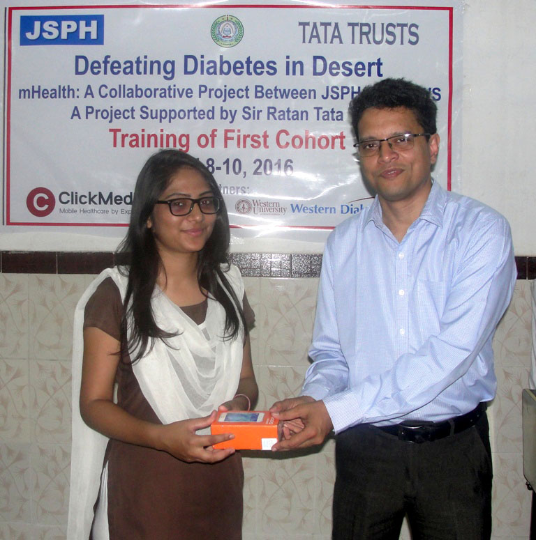 उल्लेखनीय है कि इस तीन दिवसीय प्रशिक्षण कार्यक्रम में केलिफॉर्निया के वेस्टर्न डायबिटिज इन्स्टीट्यूट के मधुमेह विशेषज्ञ एवं जोधपुर स्कूल ऑफ पब्लिक हैल्थ के विजिटिंग फैकल्टी एन्ड्रयू एस. प्यूमिरेन्ज़ व जोधपुर स्कूल ऑफ पब्लिक हैल्थ के प्रोजेक्ट पार्टनर क्ल्कि मेडिक्स की सीईओ अमेरिका वाशिंगटन की टिंग शी, वरिष्ठ फिजीशियन डॉ अरविन्द माथुर, पब्ल्कि हैल्थ विभाग के संकाय सदस्य डॉ. नितिन जोशी और एमहैल्थ डायरेक्टर एवं कार्यक्रम संयोजक विकास अरोडा ने माई खदिजा इंस्टीट्यूट ऑफ नर्सिंग साईन्सेज, मौलाना आजाद इन्स्टीट्यूट ऑफ फार्मेसी और लाचू मेमोरियल कॉलेज के पब्लिक हैल्थ संकाय से जुड़ेे 50 स्वास्थ्यकर्मियों को प्रशिक्षण प्रदान किया ।