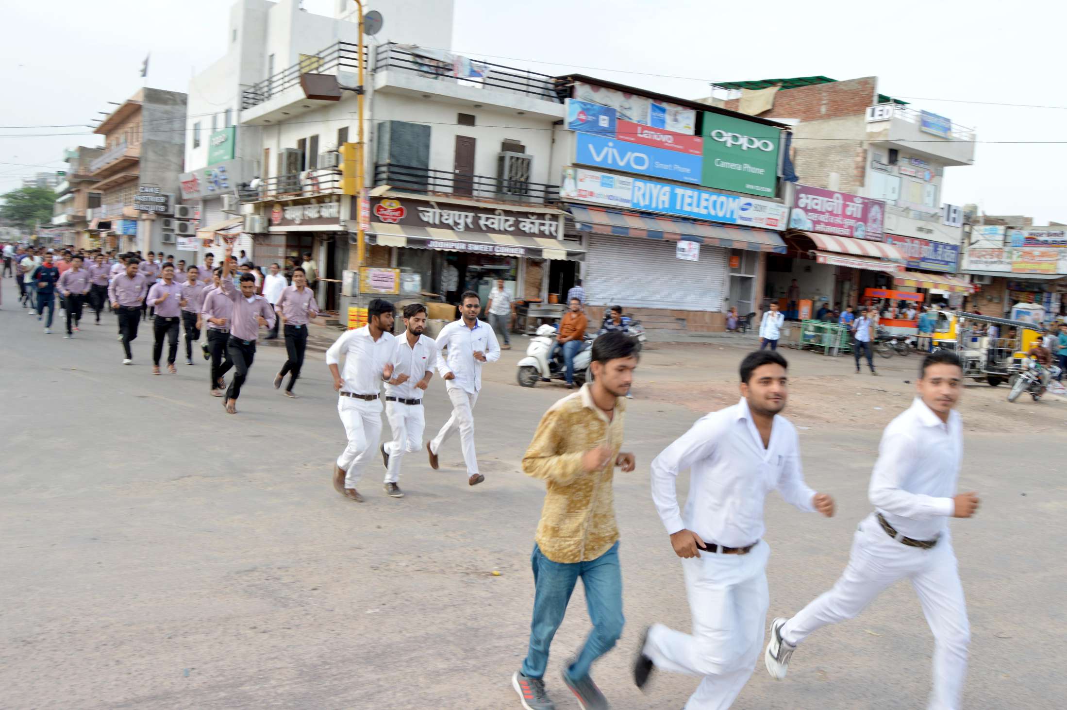 मौलाना आजाद यूनिवर्सिटी के प्रेसिडेन्ट हामिद अली खान ने देश के महान महापुरूषों के जीवन से सीख लेकर उन जैसा बनने का संदेश दिया। यूनिवर्सिटी के डिप्टी रजिस्ट्रार एवं दौड़ के संयोजक मोहम्म्द रफीक खान ने बताया कि दौड़ में स्टूडेन्ट्स ने आओ सब मिलकर दौड़े, रन फॉर इण्डिया, सद्भावना दौड़, रन फॉर पीस, रन फॉर हारमनी, कौमी एकता-देश की एकता, सारे जहां से अच्छा हिन्दुस्तां हमारा, सरीखे नारों की तख्तियां और स्वर्गीय गांधी की तिरंगे सहित तस्वीर रूपी बैनर को हाथों में थामकर, रैली में सामाजिकद सद्भाव, धर्मनिरपेक्षता और आपसी भाईचारे का पैगाम दिया।