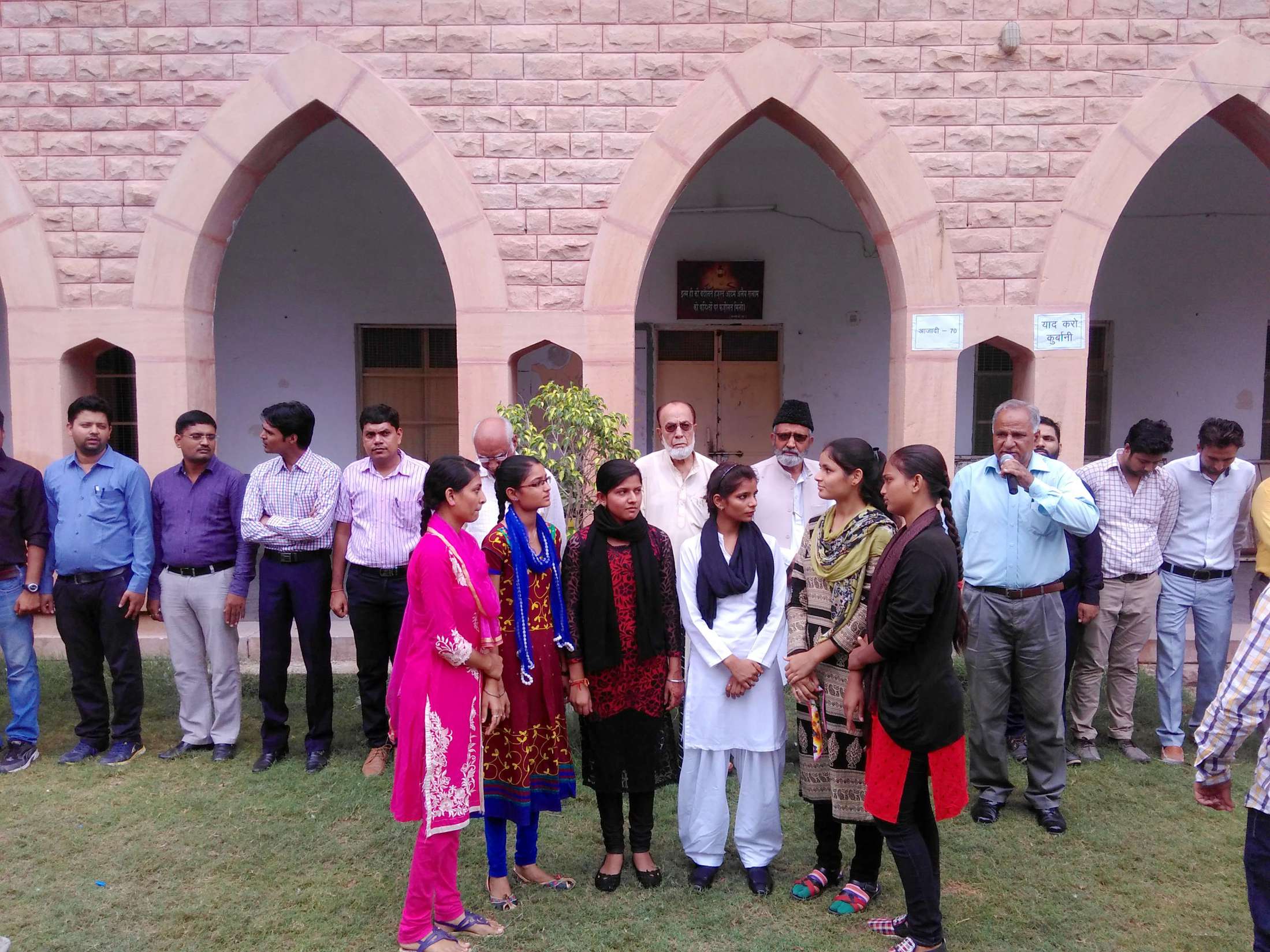 विश्व विद्यालय अनुदान आयोग की ओर से देश की आजादी के 70 वर्षो की खुशी के मौके पर 9 से 23 अगस्त तक ‘याद करों कुर्बानी‘ शीर्षक के देश व्यापी अभियान के अन्तर्गत कमला नेहरू नगर स्थित मौलाना आजाद यूनिवर्सिटी में मंगलवार को सामुहिक रूप से समस्त छात्र-छात्राओं एवं व्याख्याताओं की ओर से ‘सामुहिक राष्ट्रगान‘ का गायन किया गया।