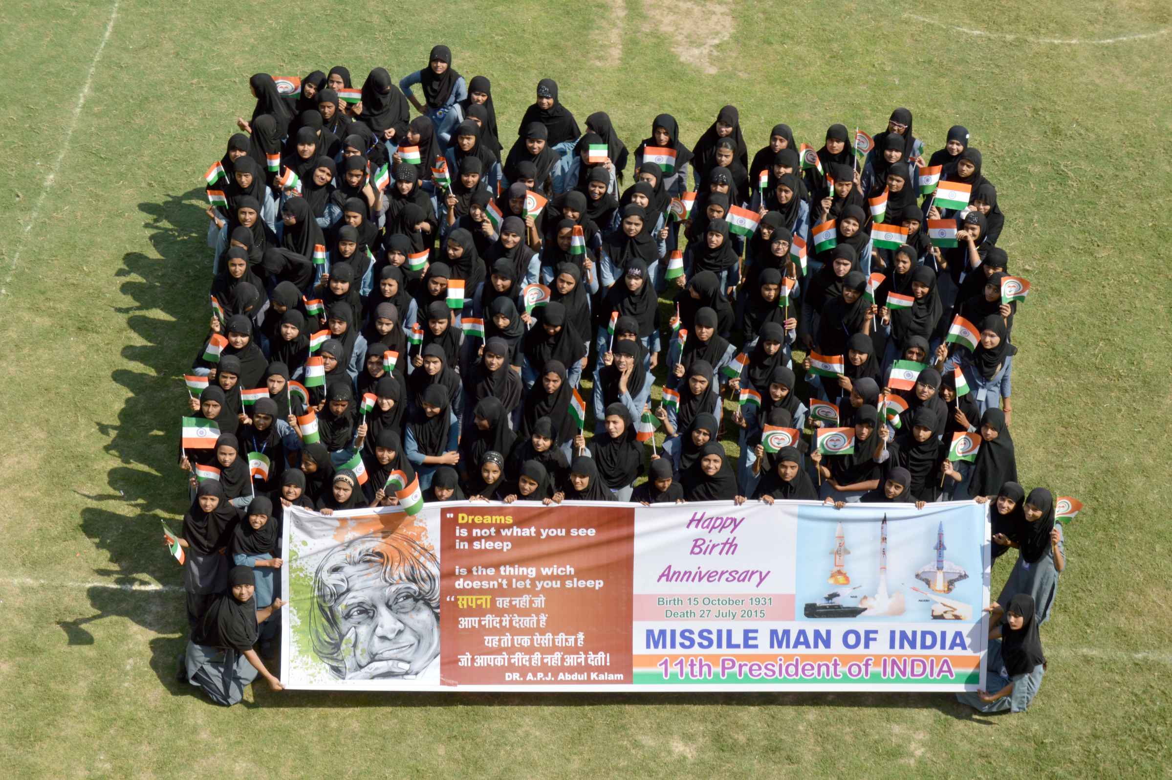 ‘सपने वह नहीं जो आप नींद में देखते है, यह तो एक ऐसी चीज जो आपको नींद ही नहीं आने देती‘, ऐसे ही प्रेरणास्त्रोत स्लोगन से सजे पोस्टर के जरिये कमला नेहरू नगर स्थित फिरोज खान मेमोरियल गर्ल्स सीनियर सैकेण्डरी विद्यालय की छात्राओं ने “स्वर्गीय राष्ट्रपति भारत रत्न डॉ. एपीजे अब्दुल कलाम की 85वीं जयन्ति पर उन्हें उनके खुद के लिखे नारों से श्रृद्धांजलि“ पेश की।