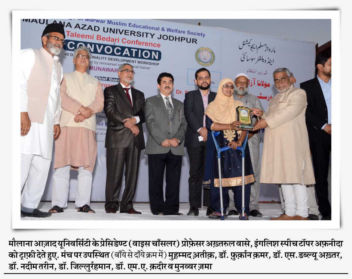सूचना-प्रसारण व तकनीक के इस युग में अंग्रेज़ी भाषा में एक्सपर्ट होना ज़रूरी होता जा रहा है. इसी ज़रूरत के मद्देनज़र मारवाड़ मुस्लिम एज्यूकेशनल एण्ड वेलफेयर सोसायटी जोधपुर के अंतर्गत संचालित मौलाना आज़ाद यूनिवर्सिटी ने इस कार्यशाला का आयोजन किया और इसके लिये अंतर्राष्ट्रीय ख्याति प्राप्त ट्रेनर मुनव्वर ज़मा की सेवाएं प्राप्त की गईं.