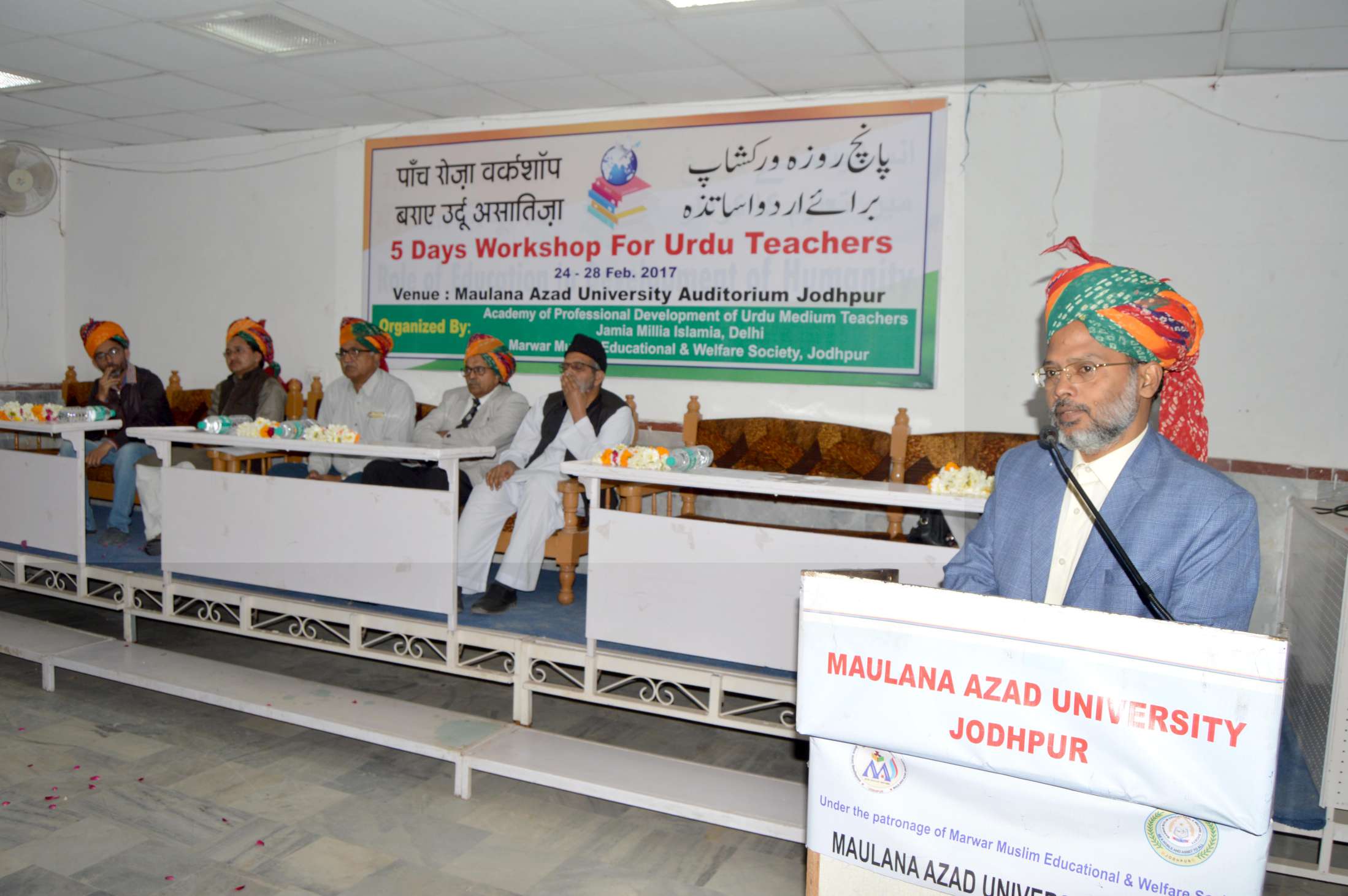 ये कहना है ‘जामिया मिलिया इस्लामिया दिल्ली की‘ अकडमी आॅफ प्रोफेशनल डेवलपमेन्ट आॅफ उर्दू मीडियम टीचर्स दिल्ली के डायरेक्टर प्रोफेसर गज़नफर अली का। वे देश की तहज़ीब (संस्कृति) कही जाने वाली उर्दू जबान (भाषा) की बेहतरी, तरक्क़ी और उर्दू शिक्षकों के ज्ञानवर्धन के लिए ‘मारवाड़ मुस्लिम एज्यूकेशनल एण्ड वेलफेयर सोसायटी एवं जामिया मिलिया इस्लामिया यूनिवर्सिटी दिल्ली की ‘अकडमी आॅफ प्रोफेशनल डेवलपमेन्ट आॅफ उर्दू मीडियम टीचर्स दिल्ली‘ के संयुक्त तत्वावधान में शुक्रवार से शुरू हुई पांच दिवसीय ‘उर्दू भाषा की तरक्की एवं उर्दू शिक्षकों की कार्यशाला‘ में बोल रहे थे।