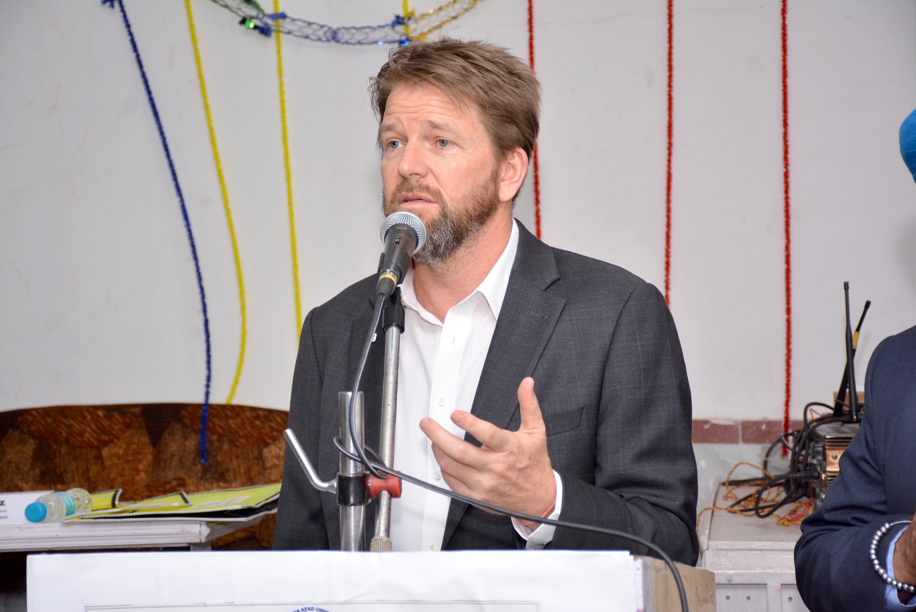 इससे पूर्व मारवाड़ मुस्लिम एज्यूकेषन एण्ड वेलफेयर सोसायटी के अध्यक्ष अब्दुल अजीज, महासचिव मोहम्मद अतीक, सदस्य मोहम्म्द इस्माईल, मोहम्मद हनीफ लोहानी, मोहम्मद रफीक खान, मोहम्मद अमीन एवं यूनिवर्सिटी रजिस्ट्रार डॉ इमरान खान पठान ने मुख्य वक्ता जेरीमी इंग्लैण्ड का स्वागत कर, मौलाना आजाद यूनिवर्सिटी की ओर से उन्हें मोमेन्टो देकर सम्मानित किया।