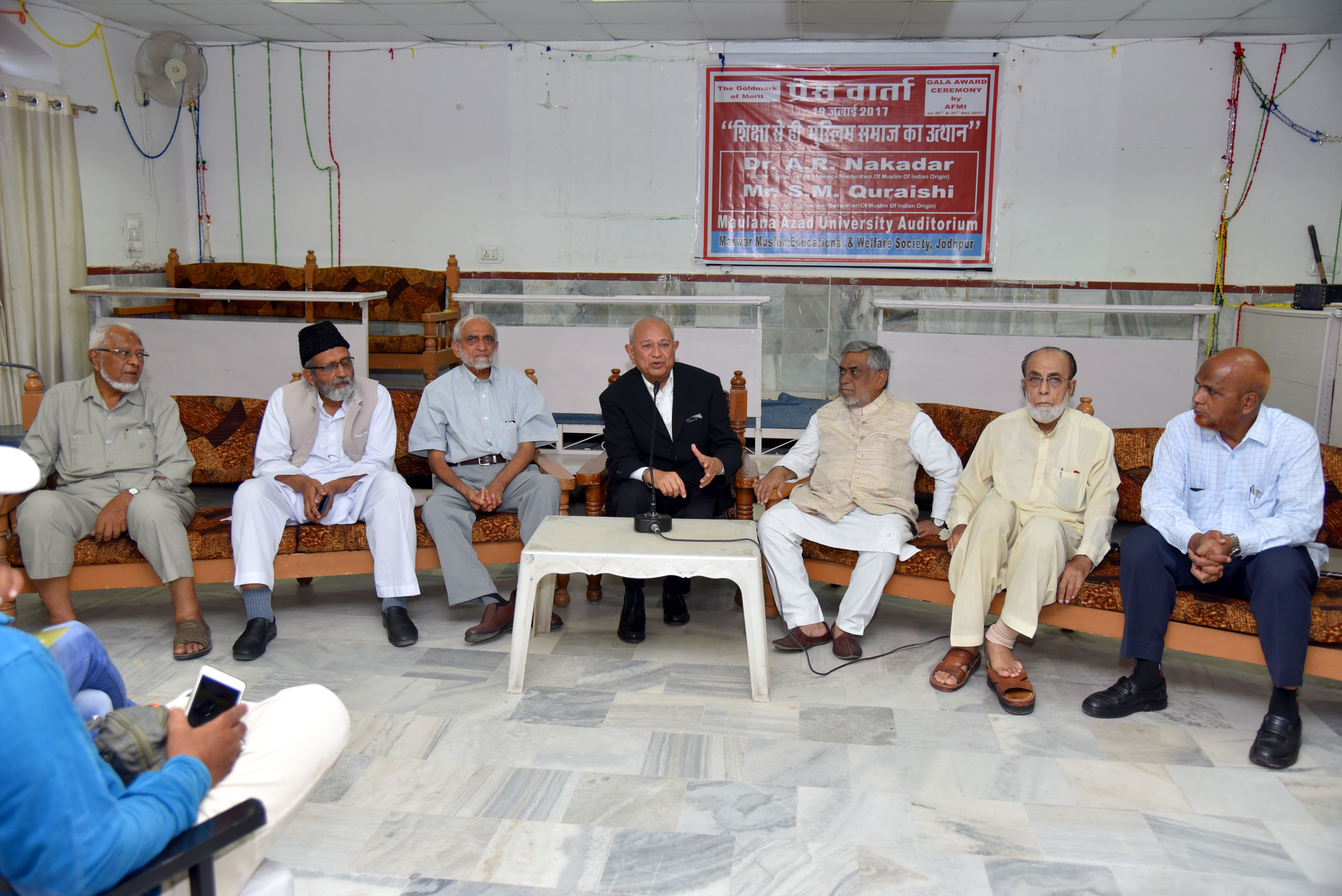 प्रेस वार्ता में मुम्बई केे मेसको संस्थान के सचिव अहमद ईस्माईल वोहरा, गुजरात अहमदाबाद के एफमी के प्रबन्धक अब्दुल अजीज, डॉ नाक़ादार इंस्टिटृयूट ऑफ नॉलेज गुजरात के अध्यक्ष डॉ. सिद्दीक कडियाववाल, उपाध्यक्ष मोहम्मद सालेह नाक़ादार, ट्रस्टी अब्दुल कादिर सेठवाला, मोहम्मद सफी बकरावाला, डॉ उम्मेद नाक़ादार, मोहम्मद नईम नाक़ादार एवं देश भर से आये एफमी सदस्य, मारवाड़ मुस्लिम एज्यूकेशनल एण्ड वेलफेयर सोसायटी के पूर्व अध्यक्ष हाजी अबादुल्लाह कुरैशी, शब्बीर अहमद खिलजी, कोषाध्यक्ष हाजी मोहम्मद इस्हाक सदस्य हनीफ लोहानी, रऊफ अंसारी, फिरोज अहमद काजी, निसार अहमद खिलजी, मोहम्मद अमीन सहित शहर भर के गणमान्य लोग मौजूद थे।