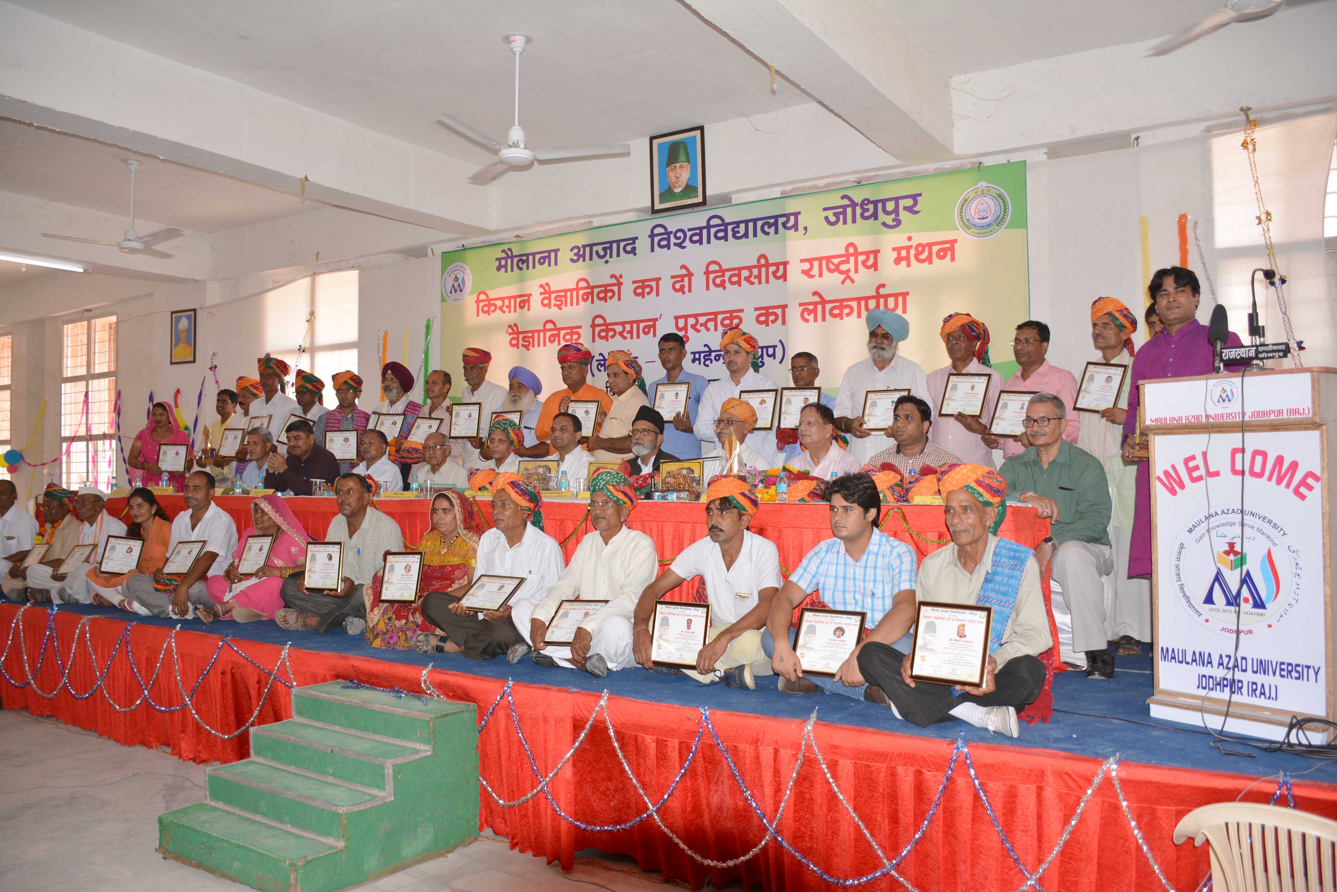 ‘मिशन किसान वैज्ञानिक‘ के समन्वयक और कृषि पत्रकार मोईनुद्दीन चिश्ती ने बताया कि मारवाड़ मुस्लिम एज्यूकेशनल एण्ड वेलफेयर सोसायटी की ओर से आयेाजित दो सत्रों में चलने वाले इस राष्ट्रीय मंथन में हरियाणा के किसान ईश्वर सिंह कुंडू, जितेन्द्र मलिक, राजेश खेड़ी, बलवान सिंह, प्रिन्स कम्बोज, पंजाब के सुरजीत सिंह चग्गर, प्रभपाल सिंह ढिल्लो, बिहार के किशोर पाण्डे़, गुजरात के बचुभाई सवजीभाई ठेसिया, उत्तरप्रदेश के आज्ञाराम वर्मा, राजस्थान की संतोष पचार, जसवीर कौर, भगवती देवी, गुरमेल सिंह धौंसी, संुडाराम वर्मा, अरविंद सांखला, मदनलाल कुमावत, जगदीश प्रसाद पारीक, श्रवण कुमार बाज्या, मोटाराम शर्मा, कैलाश चैधरी, मदनलाल देवड़ा, झाबरमल पचार, गणपतलाल नागर, डाॅ. राज दहिया, गंगाराम कीर, भंवर सिंह पीलीबंगा, सुशील कुमार कुंडू, गजानन्द अग्रवाल, हिमाचल प्रदेश के चैधररी परमाराम, हरिमन शर्मा, महाराष्ट्र के गोपाल मल्हारी भिसे, राजेन्द्र छबुलाल जाधव सहित कई अन्य राष्ट्रीय स्तर के किसान वैज्ञानिक अपने अनुभवों को स्थानीय किसानो, कृषि क्षेत्र से जुड़े दिग्गजों, शिक्षाविदेां, युवाओं व गणमान्य लोगों से साझा किया।