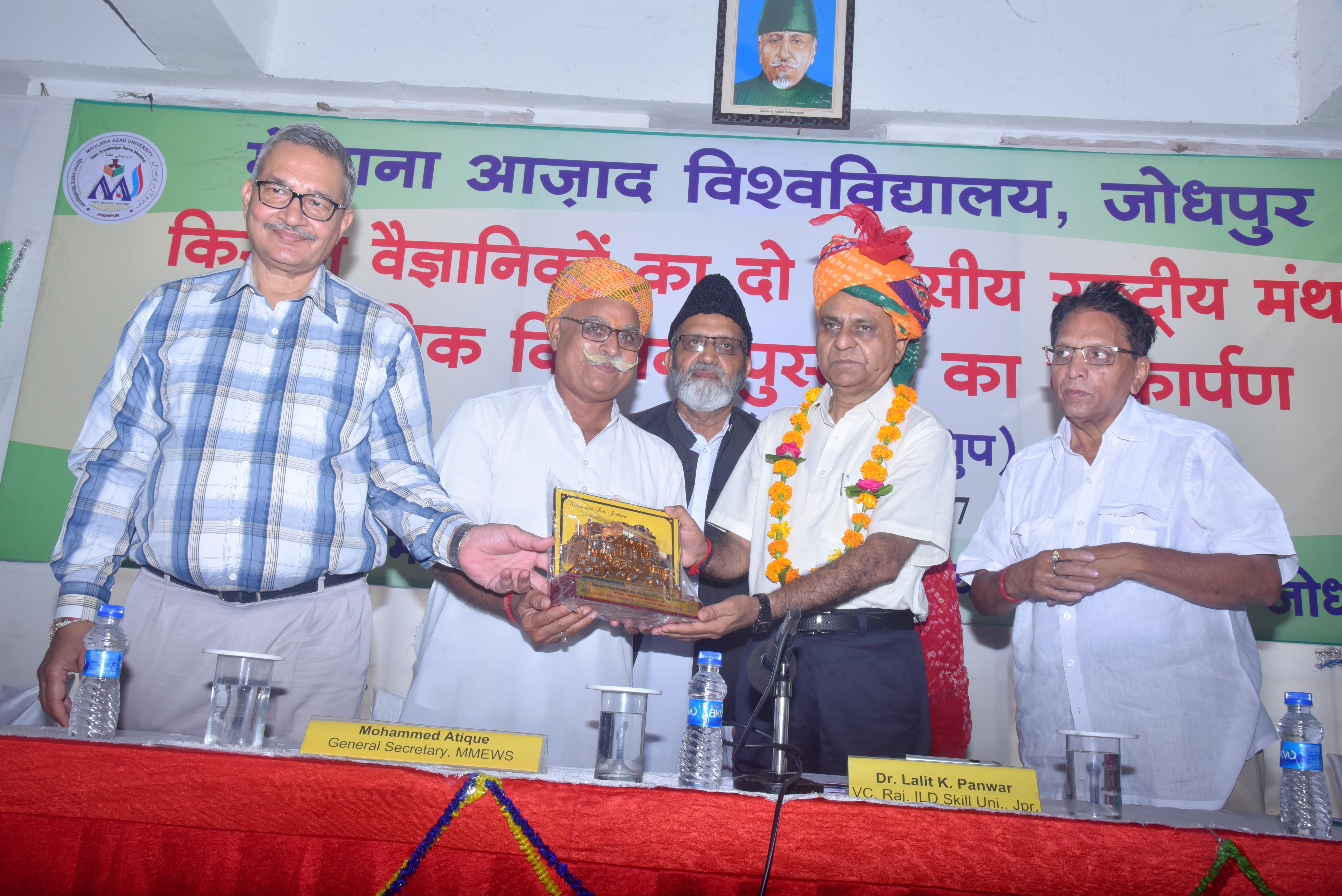 वे मारवाड़ मुस्लिम एज्यूकेशनल एण्ड वेलफेयर सोसायटी के अधीन संचालित मौलाना आज़ाद यूनिवर्सिटी बुझावड गंगाणा फाटा में आयोजित दो दिवसीय वैज्ञानिक किसानों के राष्ट्रीय मंथन के समापन समारोह में अपना अध्यक्षीय उद्बोधन दे रहे थे।