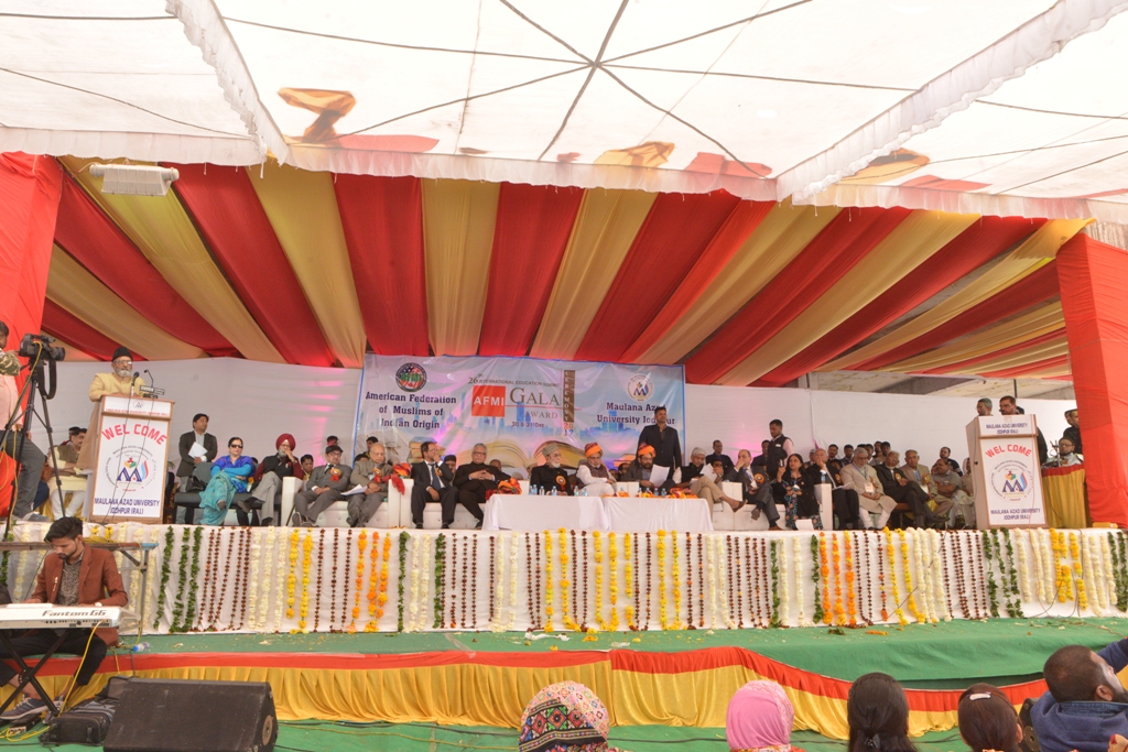 आदर्श मुस्लिम समाचार के सम्पाद के सलीम खिलजी ने अल्पसंख्यक मंत्रालय की ओर से किये जा रहे विकाय कार्यो की जानकारी दी। इस मौके पर एफमी की ओर से मौलना आजाद यूनिवर्सिटी के प्रेसिडेन्ट प्रोफेसर अख्तरूल वासे को सर सय्यद अवार्ड पेश करते हुए उनके षिक्षा के क्षेत्र में निरन्तर सेवा को सम्मानित किया। मौलाना आजाद यूनिवर्सिटी के प्रेसिडेन्ट पद्श्री अख्तरूल वासे ने अध्यक्षता की। संचालन डाॅ असलम अब्दुल्लाह व मोहम्मद अमीन ने किया। तिलावत ए कुरान मौलाना शाहिद हुसैन नदवी ने किया। पूर्व में मौलाना आजाद बीएसटी के विद्यार्थियों ने तराना ए हिन्द व बीएड विद्यार्थी रोशन खान ने पधारो म्होरे देश पेश किया। यूनिवर्सिटी छात्रा रजिया ने बेटी विषय पर खूबसूरत गीत पढा। रविवार 31 दिसम्बर को 10 बजे कमला नेहरू नगर स्थिम मौलाना आजाद स्कूल के सभागार में राजस्थान के स्पेशल सेक्रट्री व प्रोफेसर नन्दलाल कल्ला के मुख्य आतिथ्य में सेरेमनी का समापन समारोह आयोजित किया जायेगा।