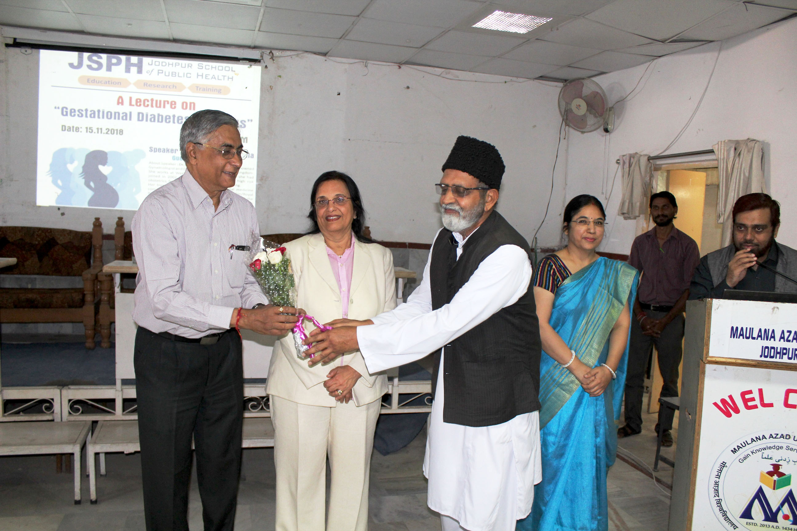 जोधपुर 15 नवम्बर। मारवाड़ मुस्लिम एज्यूकेशनल एण्ड वेलफेयर सोसायटी के अधीन संचालित गंगाणा फाटा, बुझावड़ गांव स्थित मौलाना आज़ाद यूनिवर्सिटी जोधपुर के डिपार्टमेन्ट आॅफ पब्लिक हैल्थ में विश्व मधुमेह दिवस के अवसर पर आयोजित कार्यक्रम की श्रृंखला में ‘गर्भकालीन मधुमेह‘ विषय पर गरूवार को कमला नेहरू नगर स्थित मौलाना आज़ाद सभागार में व्याख्यान का आयोजन हुआ।