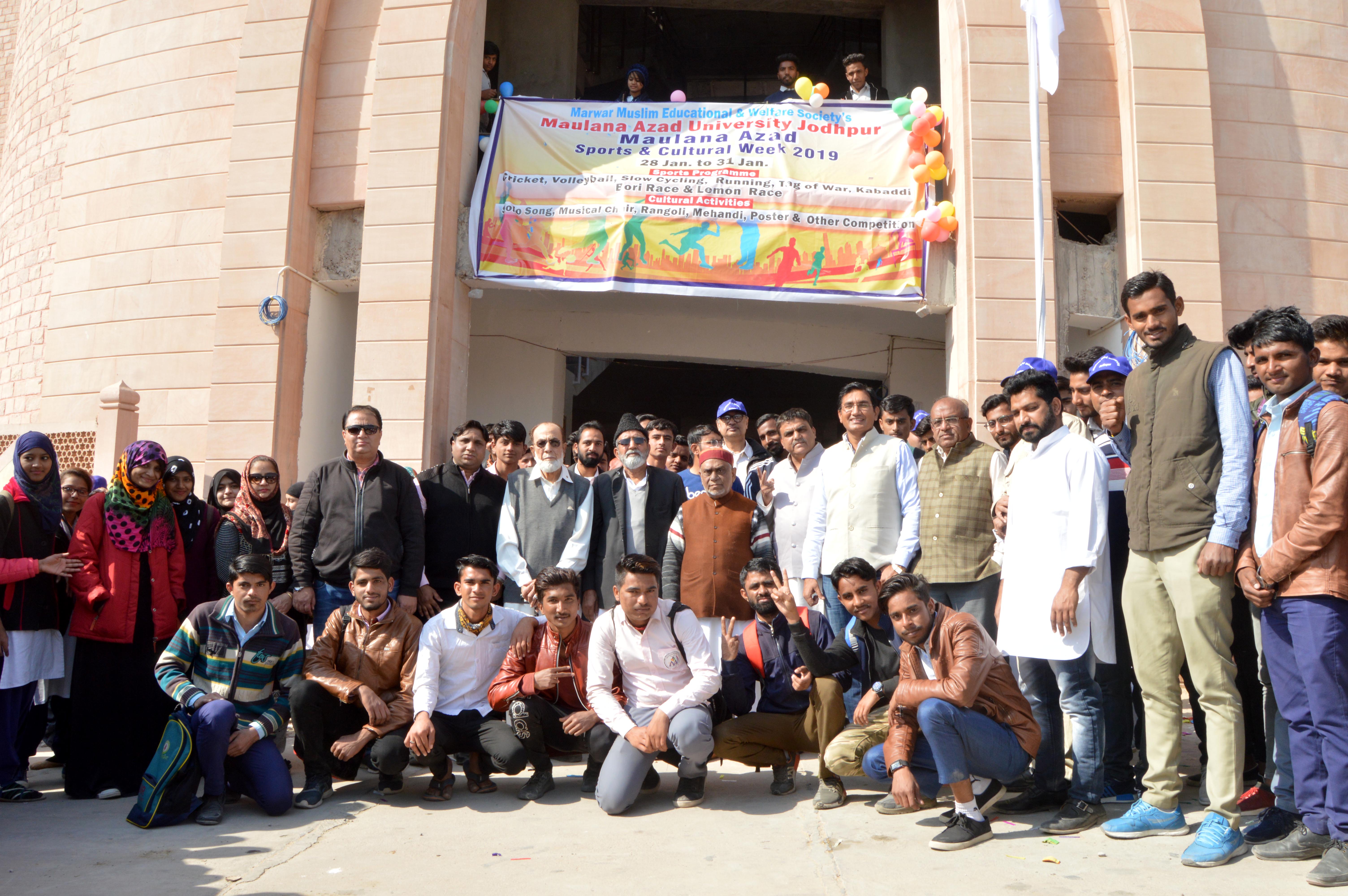 जोधपुर 28 जनवरी। मारवाड़ मुस्लिम एज्यूकेशनल एण्ड वेलफेयर सोसायटी के अधीन संचालित गंगाणा फाटा, बुझावड़ गांव स्थित मौलाना आज़ाद यूनिवर्सिटी, जोधपुर में सोमवार को ‘मौलाना आज़ाद खेलकूद व सांस्कृतिक सप्ताह 2019‘ का विधिवत् शुभारम्भ जिम्नास्टिक फेडरेशन ओफ इण्डिया के उपाध्यक्ष रियाज भाटी के हाथों हुआ।