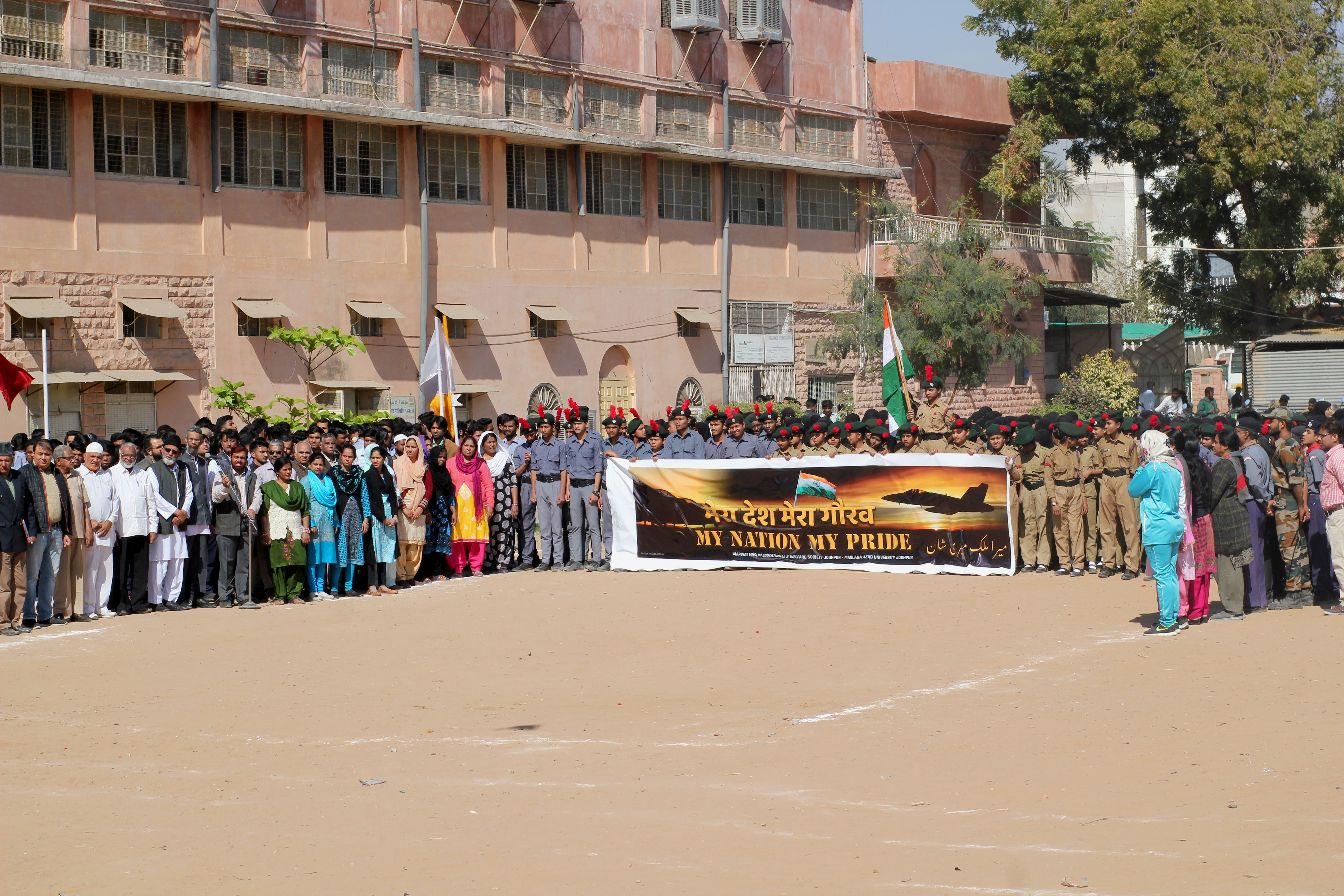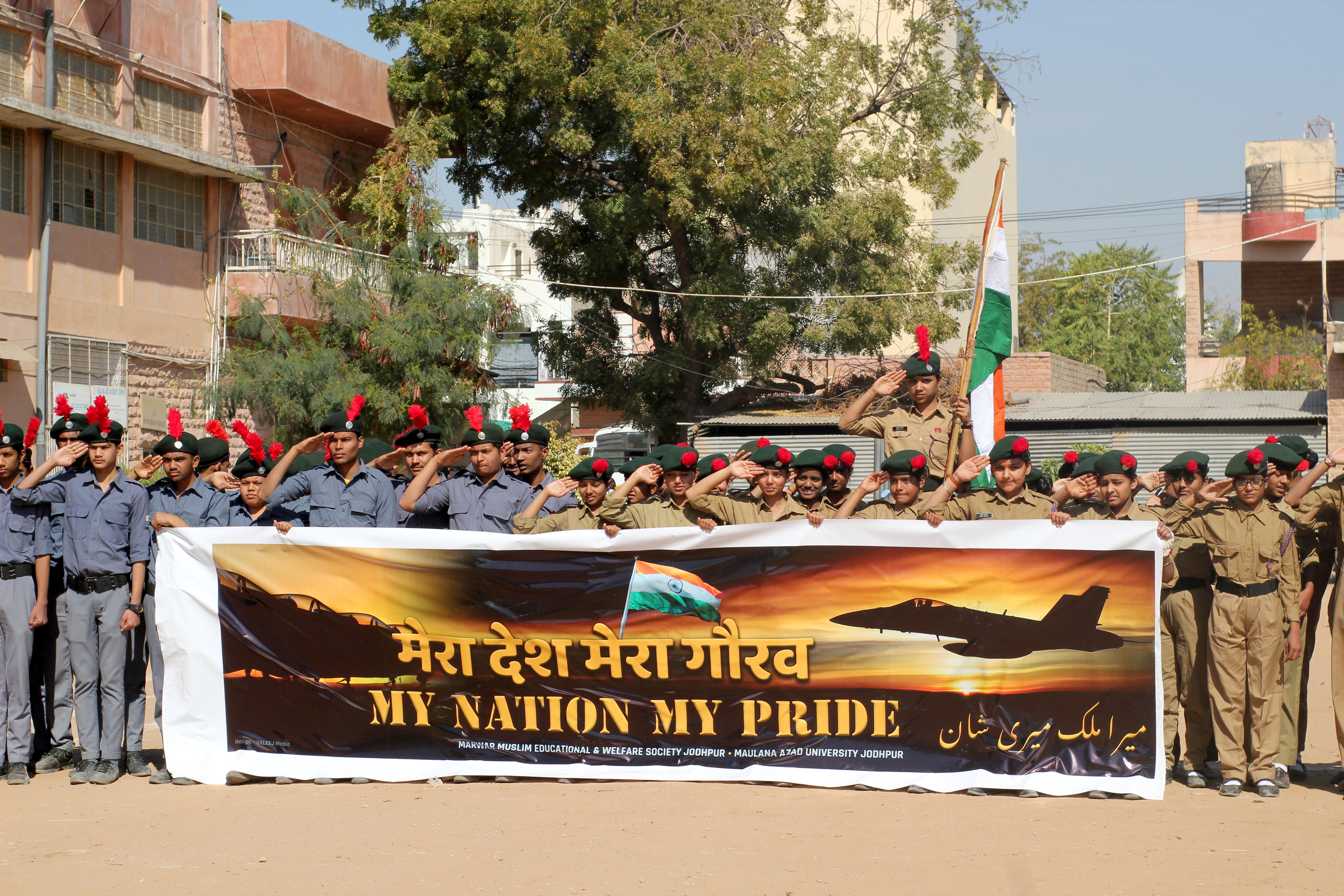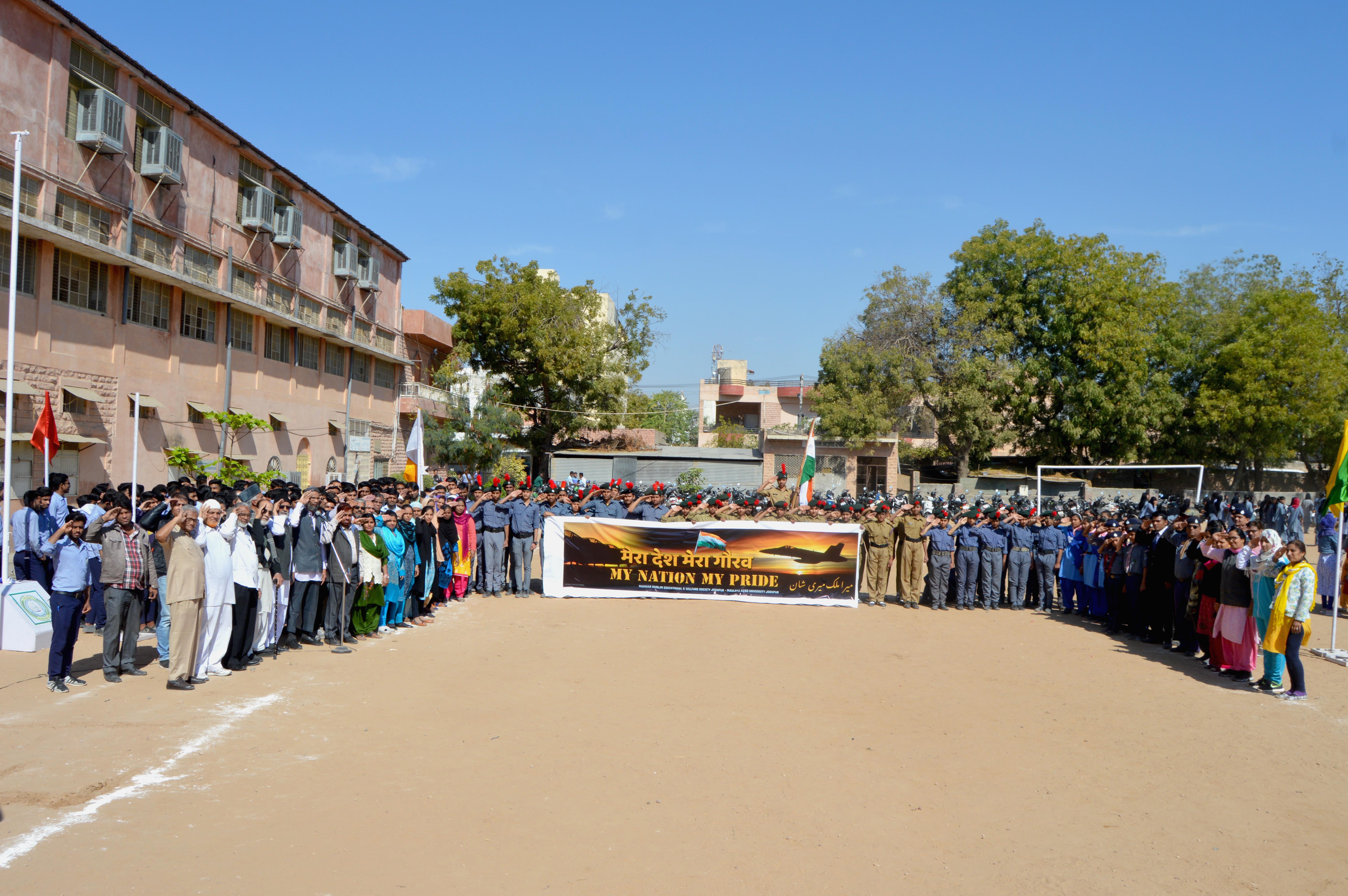 जोधपुर 28 फरवरी। मारवाड़ मुस्लिम एज्यूकेशनल एण्ड वेलफेयर सोसायटी के अधीन संचालित मौलाना अबुल कलाम आज़ाद मुस्लिम सीनियर सैकेण्डरी स्कूल में गुरूवार को आयोजित हुए सीनियर विद्यार्थियों के विदाई समारोह को ‘मेरा देश मेरा गौरव‘ मुहिम के साथ भारतीय सेना के साहस को सलाम पेश करते हुए स्कूल के स्काउट, एनसीसी सहित समस्त स्टूडेन्ट्स व टीचर्स ने इसे अनूठे अंदाज में मनाया।
