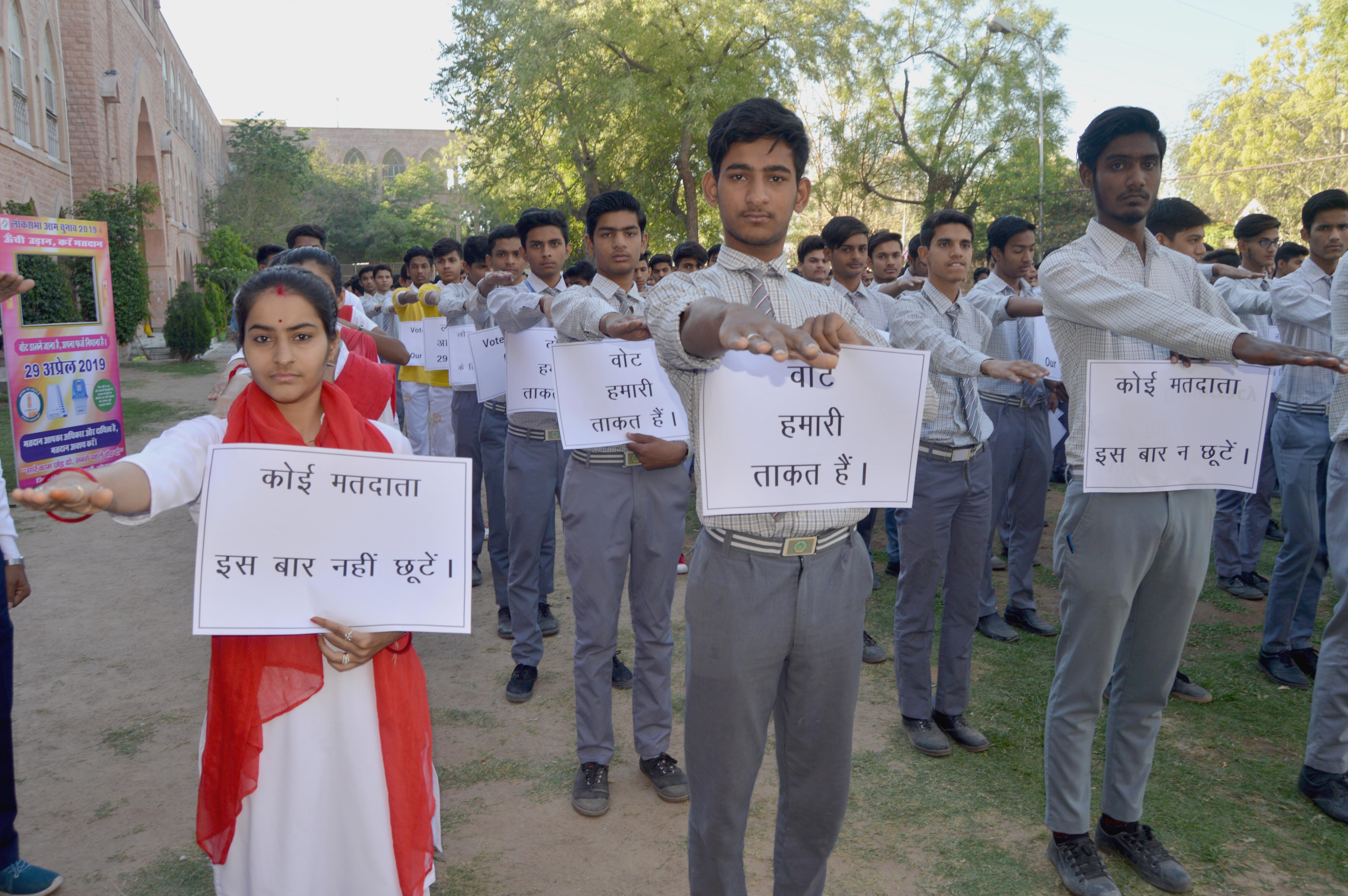 इस मौके पर युवा मतदाताओं ने कहा कि हम सभी अपने-अपने क्षेत्रों में जाकर शत-प्रतिषत मतदान करवाने की पूर्ण कोशिश करेंगे। सभी ने मतदान जागरूकता अभियान के तहत ‘लोकतंत्र का मान करें, सौ प्रतिशत मतदान करें, नशे से न नोट से, किस्मत बदलेगी वोट से, डाले वोट बूथ पर जाये, लोकतंत्र का पर्व मनाएं, छोड़ो अपने सारे काम, चलो करेें पहले मतदान, जगे समाज की क्या पहचान, शत प्रतिशत हो मतदान, बहकावे में कभी न आना, सोच समझकर बटन दबाना, बांटे दारू, साड़ी, नोट, उनको कभी न देंगे वोट’ के नारे लगाये। अंत में निर्वाचन व शिक्षा विभाग की ओर से स्वीप सहप्रभारी गजेन्द्र चावला व एडीईओ मोहम्मद रफीक खान ने सभी का आभार व धन्यवाद ज्ञापित किया।