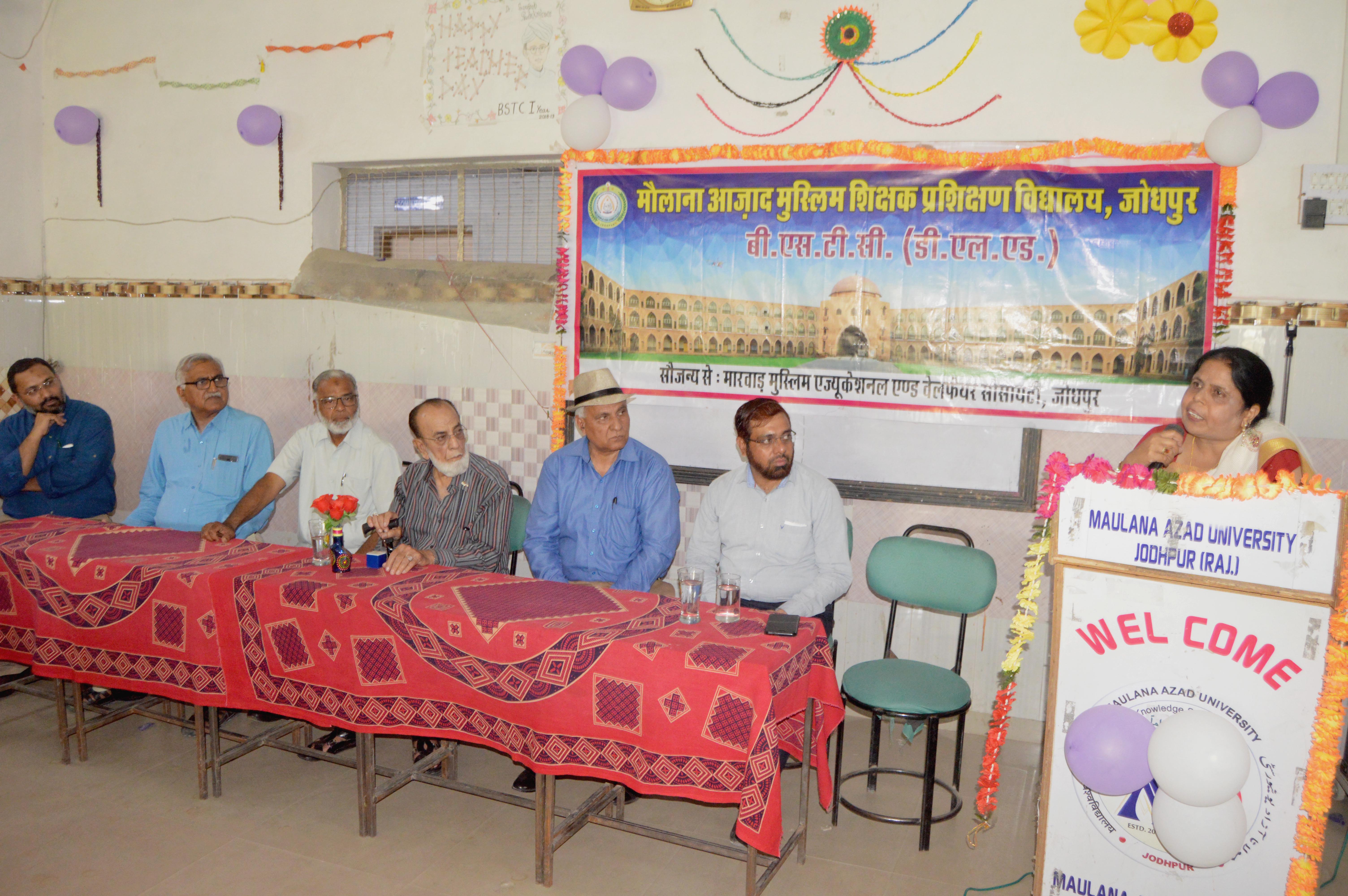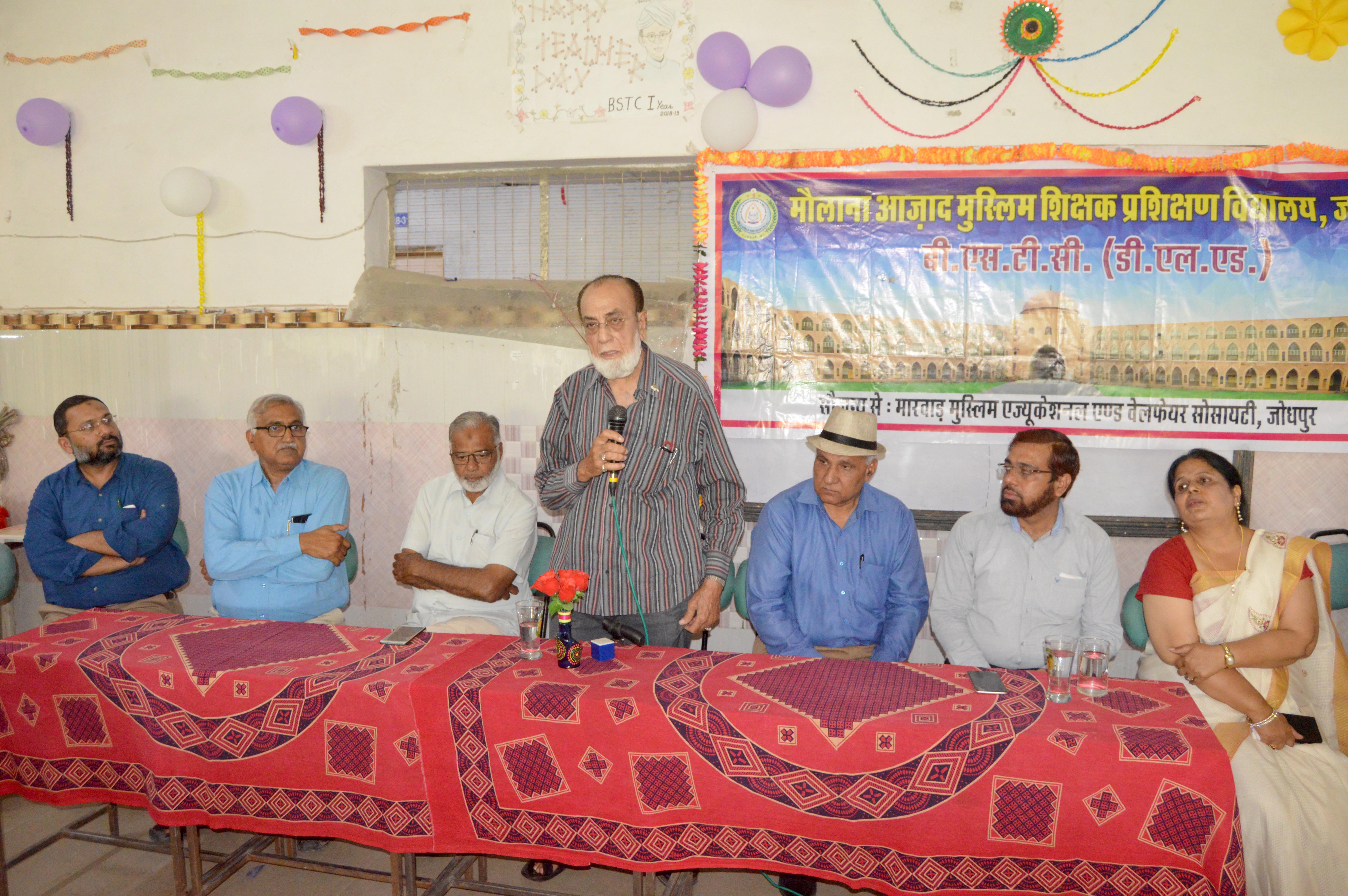 संस्थान के महासचिव निसार अहमद खिलजी ने बीएसटीसी प्रषिक्षणार्थियों को उज्जवल भविष्य की शुभकामना देते हुए कहा कि अभी तो तुम्हें और भी तरक्की की कड़ी मंजिलें तय करनी है। मौलाना आज़ाद यूनिवर्सिटी के रजिस्ट्रार पूर्व आरएएस अनवर अली खान ने प्रषिक्षणार्थियों को अपने संस्कारों के साथ नई तकनीक अपनाते हुए भविष्य में विद्यार्थियों को संस्कारवान बनाने को कहा। मौलाना अबुल कलाम आज़ाद मुस्लिम सीनियर सैकेण्डरी स्कूल के प्रिन्सीपल इन्तिखाब आलम ने भी प्रेरणारूपी उद्बोधन दिया।