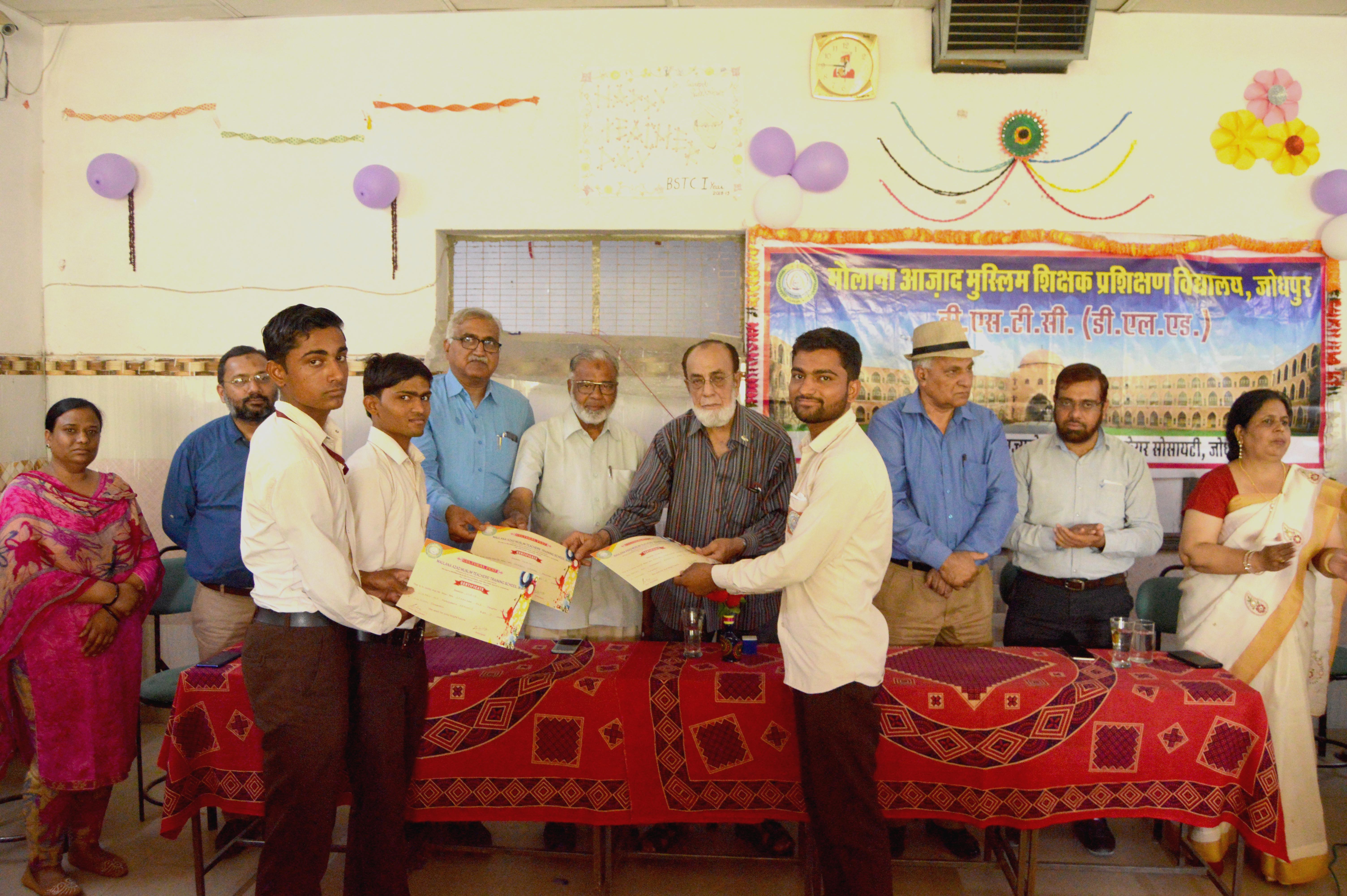 बीएसटीसी प्रिन्सीपल जे़बा नाज़ ने अपने पेषे के प्रति ईमानदारी रखते हुए कामयाब शिक्षक बनने को कहा। विद्यार्थियों ने स्पीच, सोंग सीनियर्स को डेडीकेट करते हुए ग्रिटींग कार्ड उपहार स्वरूप दिये। रैम्प वाॅक सहित कई चरणों में हुई मिस बीएसटीसी प्रतियोगिता में पूजा ने पहला, वर्षा ने दूसरा व विमला ने तीसरा स्थान हासिल किया। हिन्दी दिवसी विषय पर हुई निबन्ध प्रतियोगिता में रणछोडदान प्रथम, पोस्टर मेकिंग प्रतियोगिता के छात्र वर्ग में मोहम्मद रमज़ान ने पहला व छात्रा वर्ग में कविता ने दूसरा स्थान हासिल किया। फुल अटेंडेन्स में निर्मल व ओल राउन्डर स्टूडेन्ट के रूप में रणछोडदान को चुना गया। बीएसटीसी प्रथम वर्ष के टाॅपर का खिताब छात्र पवन को मिला। साथ ही विभिन्न खेलकूद व सांस्कृतिक गतिविधियों में 40 विजेताओं को पुरस्कृत किया गया।