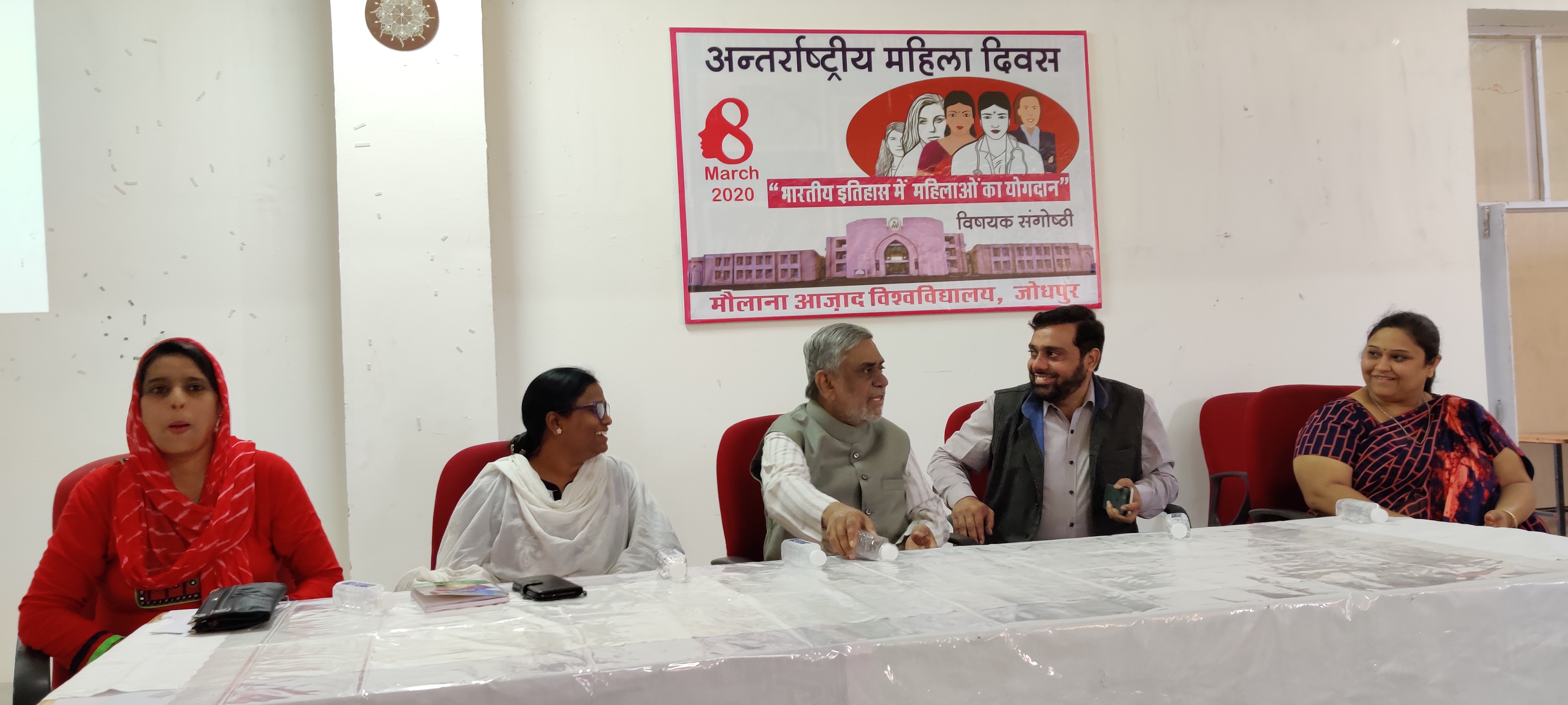 जोधपुर 07 मार्च 2020। आज यहां मौलना आज़ाद यूनिवर्सिटी में अन्तर्राष्ट्रीय महिला दिवस की पूर्व संध्या पर ‘भारतीय इतिहास में महिलाओं का योगदान‘ विषयक एक संगोष्ठी का आयोजन किया गया। जिसकी अध्यक्षता यूनिवर्सिटी के अध्यक्ष (वीसी) पद्म श्री अख्तरूल वासे ने की।