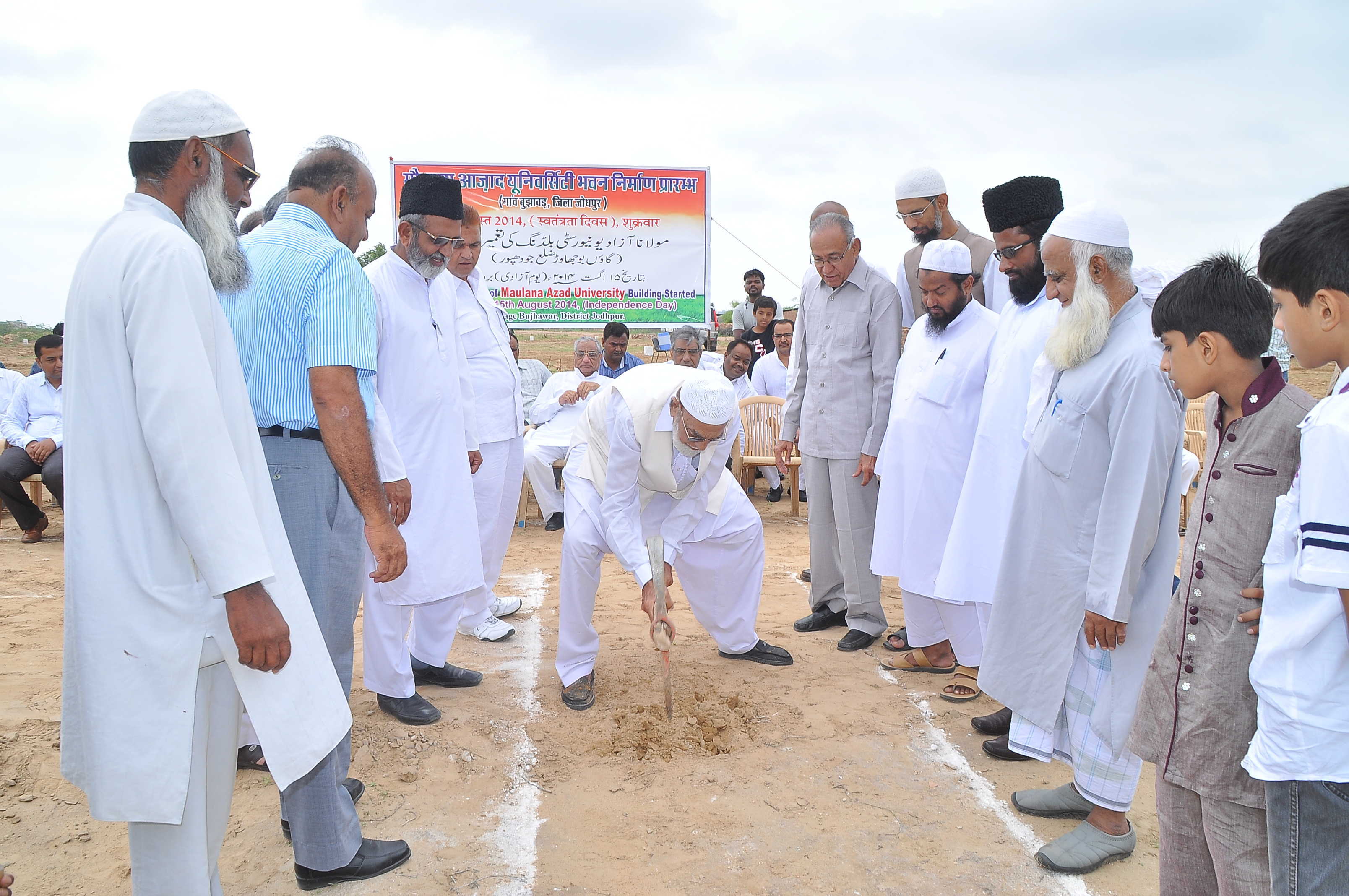 यौमे आजादी पर तिलावते कुरान से शुरू हुए इस नेक कार्य के समारोह में मौजूद सभी लोगों ने फावड़े से बारी-बारी मिट्टी खोदकर, इस ऐतिहासिक कार्य में अपनी मौजूदगी दर्ज कराई। समारोह में सोसायटी के अध्यक्ष अब्दुल अजीज, उपाध्यक्ष नजीर खां, कोषाध्यक्ष हाजी मोहम्मद इस्हाक, पूर्व अध्यक्ष हाजी अबादुल्लाह कुरैशी, मौलाना आजाद यूनिवर्सिटी के अध्यक्ष डॉ. गुलाम रब्बानी, शौकत अंसारी, सईद अंसारी, रफीक बुन्दू, रजिस्ट्रार ओपी बोहरा, इग्नू के आर.के. शर्मा, मेहताजी, सोसायटी सदस्य फजलुर्रहमान, मोहम्मद अली चुन्दड़ीगर, मोहम्मद इस्माईल, हारून खान, गफ्फार मंसूरी, जकी अहमद, रऊफ अंसारी, फिरोज अहमद काजी, खालिद कुरैशी, सलीम खिलजी, अब्दुल रऊफ कोन्ट्रेक्टर, इकरामुद्दीन अब्बासी, अब्दुल्लाह उमर, जावेद कुरैशी, जितेन्द खत्री, मोहम्मद सादिक फारूकी, सलीम अहमद, वाजिद शेख, शहाबुद्दीन, मोहम्मद मुस्तफा, सहित सोसायटी के समस्त सदस्य उपस्थित थे। अंत में सासेायटी व यूनिवर्सिटी की तालीमी बेहतरी और मुल्क में अम्नोशांन्ति की दुआ हाफिज मोहम्मद शकील, मौलाना अबुल कलाम एवं मौलाना शाहिद नदवी ने कराई।